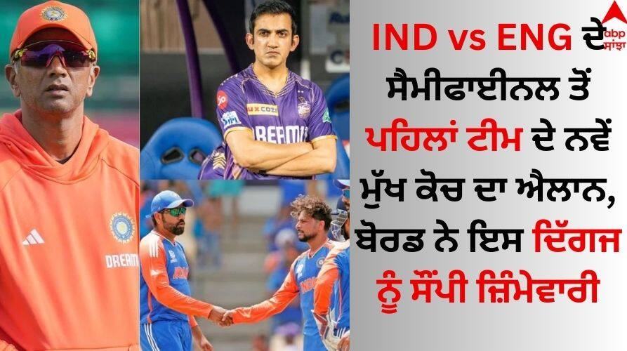 ਜਿਸਦੇ ਚੱਲਦੇ ਸੈਮੀਫਾਈਨਲ 'ਚ ਸ਼ਾਨਦਾਰ ਮੁਕਾਬਲਾ ਵੇਖਣ ਨੂੰ ਮਿਲ ਸਕਦਾ ਹੈ। ਉਥੇ ਹੀ ਇਸ ਮਹਾਮੁਕਾਬਲੇ ਤੋਂ ਪਹਿਲਾਂ ਇੱਕ ਵੱਡੀ ਖਬਰ ਸਾਹਮਣੇ ਆਈ ਹੈ। ਕਿਉਂਕਿ, ਟੀ-20 ਵਿਸ਼ਵ ਕੱਪ ਦੌਰਾਨ ਹੀ ਟੀਮ ਦੇ ਮੁੱਖ ਕੋਚ ਦਾ ਐਲਾਨ ਕੀਤਾ ਗਿਆ ਹੈ। ਤੁਹਾਨੂੰ ਦੱਸ ਦੇਈਏ ਕਿ ਗੌਤਮ ਗੰਭੀਰ ਨੂੰ ਟੀਮ ਦੇ ਮੁੱਖ ਕੋਚ ਦੀ ਜ਼ਿੰਮੇਵਾਰੀ ਨਹੀਂ ਮਿਲੀ ਹੈ।