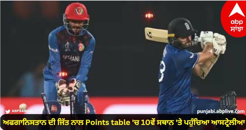 ENG vs AFG: ਅਫਗਾਨਿਸਤਾਨ ਨੇ ਇਸ ਵਿਸ਼ਵ ਕੱਪ 'ਚ ਪਹਿਲਾ ਅਪਸੈੱਟ ਕੀਤਾ ਹੈ। ਮੌਜੂਦਾ ਚੈਂਪੀਅਨ ਇੰਗਲੈਂਡ ਨੂੰ ਹਰਾ ਕੇ ਇਸ ਟੀਮ ਨੇ ਪੂਰੀ ਦੁਨੀਆ ਨੂੰ ਦੱਸ ਦਿੱਤਾ ਕਿ ਉਹ ਕਿਸੇ ਵੀ ਟੀਮ ਨੂੰ ਹਰਾ ਸਕਦੀ ਹੈ। ਇਹ ਮੈਚ ਜਿੱਤ ਕੇ ਅਫਗਾਨਿਸਤਾਨ ਨੇ ਇੰਗਲੈਂਡ ਨੂੰ ਹੀ ਨਹੀਂ ਸਗੋਂ ਆਸਟ੍ਰੇਲੀਆ ਨੂੰ ਵੀ ਸ਼ਰਮਿੰਦਾ ਕਰ ਦਿੱਤਾ ਹੈ। ਆਸਟ੍ਰੇਲੀਆ ਦੀ ਟੀਮ ਅੰਕ ਸੂਚੀ 'ਚ ਨੌਵੇਂ ਸਥਾਨ 'ਤੇ ਸੀ ਅਤੇ ਅਫਗਾਨਿਸਤਾਨ ਦਸਵੇਂ ਸਥਾਨ 'ਤੇ ਸੀ ਪਰ ਇੰਗਲੈਂਡ ਨੂੰ ਹਰਾ ਕੇ ਅਫਗਾਨਿਸਤਾਨ ਦੀ ਟੀਮ ਅੰਕ ਸੂਚੀ 'ਚ ਛੇਵੇਂ ਸਥਾਨ 'ਤੇ ਪਹੁੰਚ ਗਈ ਹੈ ਅਤੇ ਆਸਟ੍ਰੇਲੀਆ ਦੀ ਟੀਮ ਸਭ ਤੋਂ ਹੇਠਾਂ ਯਾਨੀ ਦਸਵੇਂ ਸਥਾਨ 'ਤੇ ਪਹੁੰਚ ਗਈ ਹੈ।