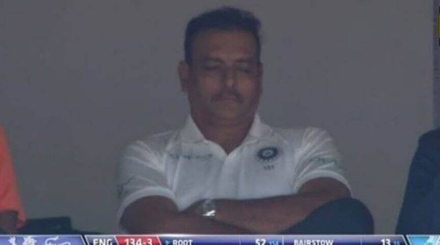 ਨਵੀਂ ਦਿੱਲੀ: ਭਾਰਤੀ ਕ੍ਰਿਕਟ ਟੀਮ ਦਾ ਹੈੱਡ ਕੋਚ ਰਵੀ ਸ਼ਾਸਤਰੀ ਭਾਰਤ ਤੇ ਇੰਗਲੈਂਡ ਵਿਚਾਲੇ ਚੱਲ ਰਹੇ ਟੈਸਟ ਮੈਚ ਦੀ ਓਪਨਿੰਗ ਵਾਲੇ ਦਿਨ ਮੈਚ ਦੌਰਾਨ ਹੀ ਸੌਂ ਗਏ। ਲੰਚ ਸੈਸ਼ਨ ਮਗਰੋਂ ਸ਼ਾਸਤਰੀ ਨੂੰ ਡ੍ਰੈਸਿੰਗ ਰੂਮ ਵਿੱਚ ਸੌਂਦੇ ਹੋਇਆਂ ਵੇਖਿਆ ਗਿਆ ਪਰ ਇਸੇ ਦੌਰਾਨ ਕਮੈਂਟਰੀ ਕਰ ਰਹੇ ਹਰਭਜਨ ਸਿੰਘ ਨੇ ਉਸ ਨੂੰ ਉਠਾਉਣ ਦੀ ਕੋਸ਼ਿਸ਼ ਕੀਤੀ। ਹਰਭਜਨ ਸਿੰਘ ਨੇ ਕਿਹਾ ਕਿ ਰਵੀ ਸ਼ਾਸਤਰੀ ਚੰਗੀ ਨੀਂਦ ਲੈ ਰਹੇ ਹਨ। ਉਸ ਨੇ ਰਵੀ ਨੂੰ ਉੱਠਣ ਲਈ ਕਿਹਾ ਤੇ ਸੰਜੈ ਨੂੰ ਕਿਹਾ ਕਿ ਉਹ ਉਸ ਦਾ ਮੈਸੇਜ਼ ਰਵੀ ਤਕ ਪਹੁੰਚਾਏ। ਹਰਭਜਨ ਨੇ ਇਹ ਗੱਲ ਭਾਰਤੀ ਟੀਮ ਦੇ ਅਸਿਸਟੈਂਟ ਕੋਚ ਸੰਜੇ ਬਾਂਗਰ, ਜੋ ਰਵੀ ਦੇ ਬਿਲਕੁਲ ਨਾਲ ਬੈਠੇ ਸੀ, ਦੇ ਕੰਨਾਂ ਵਿੱਚ ਈਅਰਫੋਨ ਜ਼ਰੀਏ ਕਹੀ। ਇਸ ਮਗਰੋਂ ਸ਼ਾਸਤਰੀ ਦੀ ਨੀਂਦ ਖੁੱਲ੍ਹੀ ਤੇ ਉਨ੍ਹਾਂ ਨੂੰ ਪਤਾ ਲੱਗਾ ਕਿ ਇਹ ਸਭ ਕੁਝ ਕੈਮਰੇ ਵਿੱਚ ਕੈਦ ਹੋ ਚੁੱਕਾ ਹੈ। ਰਵੀ ਸ਼ਾਸਤਰੀ ਨੂੰ ਮੈਚ ਦੇ 45ਵੇਂ ਓਵਰ ਵਿੱਚ ਸੌਂਦਿਆਂ ਫੜਿਆ ਗਿਆ ਜਦੋਂ ਉਹ ਰੂਟ ਤੇ ਬੇਅਰਸਟੋ ਬੱਲੇਬਾਜ਼ੀ ਕਰ ਰਹੇ ਸੀ। ਉਸ ਸਮੇਂ ਇੰਗਲੈਂਡ ਦੀ ਟੀਮ ਦਾ ਸਕੋਰ 134/3 ਸੀ। ਮੈਚ ਤੋਂ ਪਹਿਲਾਂ ਰਵੀ ਸ਼ਾਸਤਰੀ ਨੇ ਕਿਹਾ ਸੀ ਕਿ ਭਾਰਤ ਬਗੈਰ ਡਰ ਦੇ ਖੇਡੇਗਾ ਤੇ ਖਿਡਾਰੀ ਵੀ ਆਪਣੀ ਕੁਦਰਤੀ ਖੇਡ ਖੇਡਣਗੇ ਤੇ ਇਸ ਤੋਂ ਬਾਅਦ ਨਤੀਜੇ ਆਪਣੇ-ਆਪ ਦਿਖਣਗੇ। ਉਨ੍ਹਾਂ ਦਾਅਵਾ ਕੀਤਾ ਸੀ ਕਿ ਉਹ ਜਿੱਤਣ ਲਈ ਖੇਡ ਰਹੇ ਹਨ। ਇੱਥੋਂ ਤਕ ਕਿ ਸੀਰੀਜ਼ ਵੀ ਜਿੱਤਣ ਲਈ ਹੀ ਖੇਡ ਰਹੇ ਹਨ।