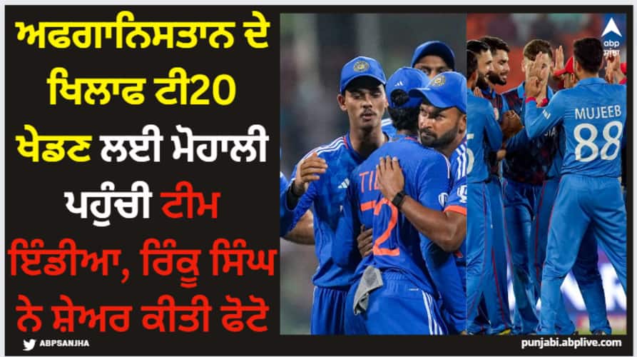 India vs Afghanistan Mohali: ਭਾਰਤ ਅਤੇ ਅਫਗਾਨਿਸਤਾਨ ਵਿਚਾਲੇ ਟੀ-20 ਸੀਰੀਜ਼ ਦਾ ਪਹਿਲਾ ਮੈਚ 11 ਜਨਵਰੀ ਨੂੰ ਖੇਡਿਆ ਜਾਵੇਗਾ। ਇਸ ਦੇ ਲਈ ਟੀਮ ਇੰਡੀਆ ਬੁੱਧਵਾਰ ਨੂੰ ਮੋਹਾਲੀ ਪਹੁੰਚੀ। ਟੀਮ ਇੰਡੀਆ ਦੇ ਨੌਜਵਾਨ ਬੱਲੇਬਾਜ਼ ਰਿੰਕੂ ਸਿੰਘ ਨੇ ਕੁਲਦੀਪ ਯਾਦਵ ਨਾਲ ਇੱਕ ਫੋਟੋ ਸੋਸ਼ਲ ਮੀਡੀਆ 'ਤੇ ਸ਼ੇਅਰ ਕੀਤੀ ਹੈ। ਭਾਰਤ ਨੇ ਇਸ ਸੀਰੀਜ਼ ਲਈ ਤਜ਼ਰਬੇਕਾਰ ਖਿਡਾਰੀਆਂ ਦੇ ਨਾਲ-ਨਾਲ ਨੌਜਵਾਨ ਖਿਡਾਰੀਆਂ ਨੂੰ ਵੀ ਮੌਕਾ ਦਿੱਤਾ ਹੈ। ਰਿੰਕੂ ਦਾ ਹੁਣ ਤੱਕ ਦਾ ਪ੍ਰਦਰਸ਼ਨ ਸ਼ਾਨਦਾਰ ਰਿਹਾ ਹੈ।