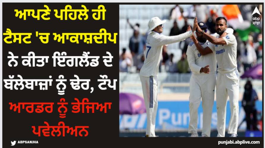 ਪਹਿਲੇ ਹੀ ਟੈਸਟ 'ਚ ਆਕਾਸ਼ਦੀਪ ਨੇ ਕੀਤਾ ਇੰਗਲੈਂਡ ਦੇ ਬੱਲੇਬਾਜ਼ਾਂ ਨੂੰ ਢੇਰਉਸ ਨੇ ਆਪਣੇ ਡੈਬਿਊ ਮੈਚ 'ਚ ਹੀ ਸਾਰਿਆਂ ਨੂੰ ਪ੍ਰਭਾਵਿਤ ਕੀਤਾ ਹੈ। ਆਕਾਸ਼ ਦੀਪ ਨੇ ਰਾਂਚੀ 'ਚ ਇੰਗਲੈਂਡ ਦੇ ਬੱਲੇਬਾਜ਼ਾਂ 'ਤੇ ਕਹਿਰ ਮਚਾ ਦਿੱਤਾ ਹੈ। ਉਸ ਨੇ ਇੰਗਲੈਂਡ ਦੇ ਤਿੰਨ ਬੱਲੇਬਾਜ਼ਾਂ ਨੂੰ ਪੈਵੇਲੀਅਨ ਭੇਜਿਆ। ਆਕਾਸ਼ ਨੇ ਆਪਣੀ ਇੰਗਲਿਸ਼ ਪਾਰੀ ਦੇ ਪੰਜਵੇਂ ਅਤੇ 10ਵੇਂ ਓਵਰ ਵਿੱਚ ਦੋ ਵਿਕਟਾਂ ਲਈਆਂ ਸਨ। ਉਸ ਨੇ ਓਵਰ ਦੀ ਦੂਜੀ ਗੇਂਦ 'ਤੇ ਬੇਨ ਡਕੇਟ ਨੂੰ ਵਿਕਟਕੀਪਰ ਧਰੁਵ ਜੁਰੇਲ ਹੱਥੋਂ ਕੈਚ ਕਰਵਾਇਆ, ਉਹ 11 ਦੌੜਾਂ ਬਣਾ ਕੇ ਆਊਟ ਹੋ ਗਏ।