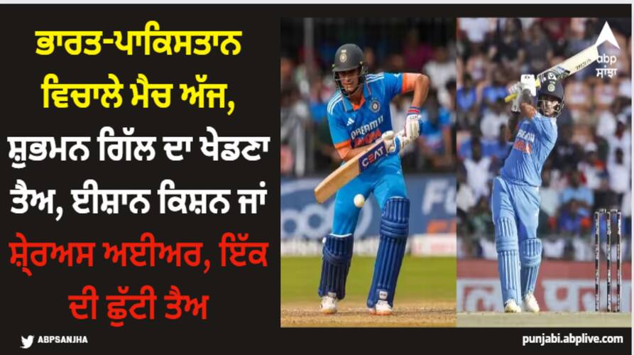 ਇਸ ਦੇ ਨਾਲ ਹੀ ਇਸ਼ਾਨ ਕਿਸ਼ਨ ਨੇ ਸ਼ੁੱਕਰਵਾਰ ਨੂੰ ਅਭਿਆਸ ਨਹੀਂ ਕੀਤਾ, ਜਿਸ ਦਾ ਮਤਲਬ ਹੈ ਕਿ ਸ਼ਾਇਦ ਸ਼ੁਭਮਨ ਗਿੱਲ ਪਾਕਿਸਤਾਨ ਖਿਲਾਫ ਹੋਣ ਵਾਲੇ ਮੈਚ 'ਚ ਪਲੇਇੰਗ ਇਲੈਵਨ ਦਾ ਹਿੱਸਾ ਹੋਣਗੇ ਅਤੇ ਜੇਕਰ ਸ਼ੁਭਮਨ ਗਿੱਲ ਖੇਡਦਾ ਹੈ ਤਾਂ ਸ਼ਾਇਦ ਈਸ਼ਾਨ ਕਿਸ਼ਨ ਜਾਂ ਸ਼੍ਰੇਅਸ ਅਈਅਰ 'ਚੋਂ ਇਕ ਖਿਡਾਰੀ। ਬਾਹਰ ਬੈਠਣਾ ਪੈ ਸਕਦਾ ਹੈ। ਹਾਲਾਂਕਿ ਟੀਮ ਦੀਆਂ ਸੰਭਾਵਨਾਵਾਂ ਨੂੰ ਦੇਖਦੇ ਹੋਏ ਲੱਗਦਾ ਹੈ ਕਿ ਈਸ਼ਾਨ ਕਿਸ਼ਨ ਨੂੰ ਬਾਹਰ ਬੈਠਣਾ ਹੋਵੇਗਾ।
