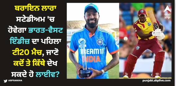 IND vs WI Live Streaming: ਵੈਸਟਇੰਡੀਜ਼ ਦੌਰੇ 'ਤੇ ਭਾਰਤੀ ਟੀਮ ਅੱਜ (03 ਅਗਸਤ) ਤੋਂ ਮੇਜ਼ਬਾਨ ਟੀਮ ਦੇ ਖਿਲਾਫ 5 ਮੈਚਾਂ ਦੀ ਟੀ-20 ਸੀਰੀਜ਼ ਦੀ ਸ਼ੁਰੂਆਤ ਕਰੇਗੀ। ਪਹਿਲਾ ਮੈਚ ਤ੍ਰਿਨੀਦਾਦ ਦੇ ਬ੍ਰਾਇਨ ਲਾਰਾ ਸਟੇਡੀਅਮ 'ਚ ਖੇਡਿਆ ਜਾਵੇਗਾ। ਭਾਰਤੀ ਸਮੇਂ ਮੁਤਾਬਕ ਇਹ ਮੈਚ ਰਾਤ 8 ਵਜੇ ਸ਼ੁਰੂ ਹੋਵੇਗਾ। ਇਸ ਤੋਂ ਪਹਿਲਾਂ ਖੇਡੀ ਗਈ ਵਨਡੇ ਸੀਰੀਜ਼ 'ਚ ਟੀਮ ਇੰਡੀਆ ਨੇ 2-1 ਨਾਲ ਜਿੱਤ ਦਰਜ ਕੀਤੀ ਸੀ। ਆਓ ਜਾਣਦੇ ਹਾਂ ਕਿ ਤੁਸੀਂ ਭਾਰਤ ਅਤੇ ਵੈਸਟਇੰਡੀਜ਼ ਵਿਚਾਲੇ ਪਹਿਲਾ ਮੈਚ ਕਦੋਂ, ਕਿੱਥੇ ਅਤੇ ਕਿਵੇਂ ਲਾਈਵ ਦੇਖ ਸਕੋਗੇ।