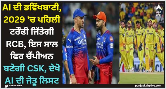 RCB 2020 ਤੋਂ 2022 ਤੱਕ ਲਗਾਤਾਰ ਪਲੇਆਫ 'ਚ ਪਹੁੰਚੀ ਸੀ, ਪਰ IPL ਟਰਾਫੀ 'ਤੇ ਕਬਜ਼ਾ ਨਹੀਂ ਕਰ ਸਕੀ। IPL 2023 'ਚ ਟੀਮ ਇਕ ਵਾਰ ਫਿਰ ਖਰਾਬ ਪ੍ਰਦਰਸ਼ਨ ਕਾਰਨ ਪਲੇਆਫ 'ਚ ਪ੍ਰਵੇਸ਼ ਨਹੀਂ ਕਰ ਸਕੀ ਅਤੇ ਇਸ ਵਾਰ ਵੀ ਟੀਮ ਸੰਕਟ ਦੀ ਸਥਿਤੀ 'ਚ ਫਸਦੀ ਨਜ਼ਰ ਆ ਰਹੀ ਹੈ। AI ਦੁਆਰਾ ਕੀਤੀ ਗਈ ਭਵਿੱਖਬਾਣੀ ਦੀ ਸੂਚੀ ਵਿੱਚ, IPL 2024 ਦੀ ਚੈਂਪੀਅਨ ਗੁਜਰਾਤ ਟਾਈਟਨਸ ਹੋਵੇਗੀ। ਅਗਲੇ ਸਾਲ ਚੇਨਈ ਸੁਪਰ ਕਿੰਗਜ਼ ਦੇ ਜਿੱਤਣ ਦੀ ਉਮੀਦ ਹੈ।