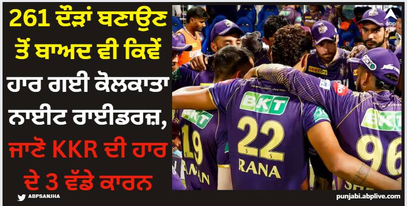 2- ਯੋਜਨਾ ਦੇ ਅਨੁਸਾਰ ਗੇਂਦਬਾਜ਼ੀ ਨਾ ਕਰਨਾਕੁਲ 261 ਦੌੜਾਂ ਦਾ ਬਚਾਅ ਕਰਦੇ ਹੋਏ ਕੋਲਕਾਤਾ ਨਾਈਟ ਰਾਈਡਰਜ਼ ਦੀ ਗੇਂਦਬਾਜ਼ੀ ਕਾਫੀ ਖਰਾਬ ਰਹੀ। ਟੀਮ ਦੀ ਗੇਂਦਬਾਜ਼ੀ 'ਚ ਕੋਈ ਯੋਜਨਾ ਨਜ਼ਰ ਨਹੀਂ ਆ ਰਹੀ ਸੀ। ਯੋਜਨਾ ਮੁਤਾਬਕ ਗੇਂਦਬਾਜ਼ੀ ਨਾ ਕਰਨਾ ਕੇਕੇਆਰ ਦੀ ਹਾਰ ਦਾ ਵੱਡਾ ਕਾਰਨ ਬਣਿਆ। ਸੁਨੀਲ ਨਰਾਇਣ ਤੋਂ ਇਲਾਵਾ ਟੀਮ ਦੇ ਸਾਰੇ ਗੇਂਦਬਾਜ਼ਾਂ ਨੂੰ ਮਾਤ ਦਿੱਤੀ ਗਈ। ਨਰਾਇਣ ਦੇ 4 ਓਵਰ 15ਵੇਂ ਓਵਰ ਵਿੱਚ ਹੀ ਪੂਰੇ ਹੋ ਗਏ। ਉਸ ਦਾ ਇੱਕ ਓਵਰ ਬਾਅਦ ਵਿੱਚ ਬਚਾਇਆ ਜਾ ਸਕਦਾ ਸੀ।