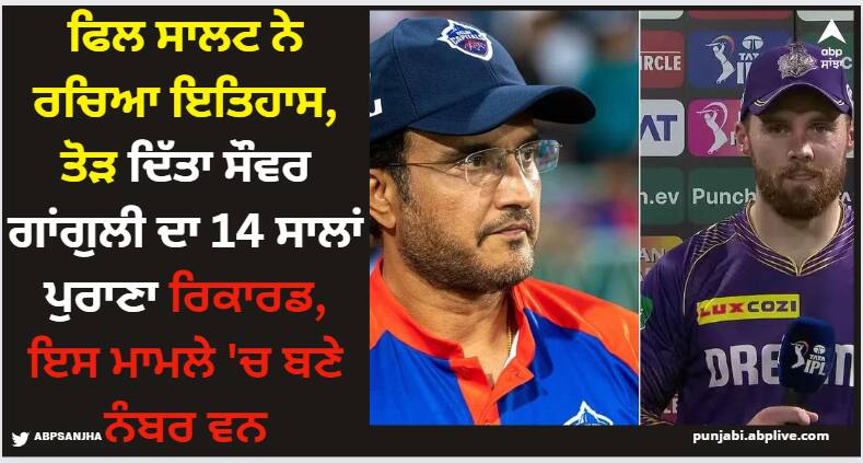 Kolkata Knight Riders vs Delhi Capitals: ਆਈਪੀਐਲ 2024 ਦਾ 47ਵਾਂ ਮੈਚ ਕੋਲਕਾਤਾ ਨਾਈਟ ਰਾਈਡਰਜ਼ ਅਤੇ ਦਿੱਲੀ ਕੈਪੀਟਲਸ ਵਿਚਕਾਰ ਖੇਡਿਆ ਗਿਆ। ਇਹ ਮੈਚ ਕੋਲਕਾਤਾ ਦੇ ਘਰੇਲੂ ਮੈਦਾਨ ਈਡਨ ਗਾਰਡਨ 'ਤੇ ਖੇਡਿਆ ਗਿਆ। ਇਸ ਮੈਚ 'ਚ ਨਾਈਟ ਰਾਈਡਰਜ਼ ਨੇ ਸ਼ਾਨਦਾਰ ਜਿੱਤ ਦਰਜ ਕੀਤੀ, ਜਿਸ 'ਚ ਫਿਲ ਸਾਲਟ ਦੀ ਧਮਾਕੇਦਾਰ ਪਾਰੀ ਦਾ ਅਹਿਮ ਯੋਗਦਾਨ ਰਿਹਾ, ਉਸ ਦੀ ਇਸ ਧਮਾਕੇਦਾਰ ਪਾਰੀ ਦੀ ਬਦੌਲਤ ਫਿਲ ਸਾਲਟ ਨੇ ਸੌਰਵ ਗਾਂਗੁਲੀ ਦਾ 14 ਸਾਲ ਪੁਰਾਣਾ ਰਿਕਾਰਡ ਵੀ ਤੋੜ ਦਿੱਤਾ।
