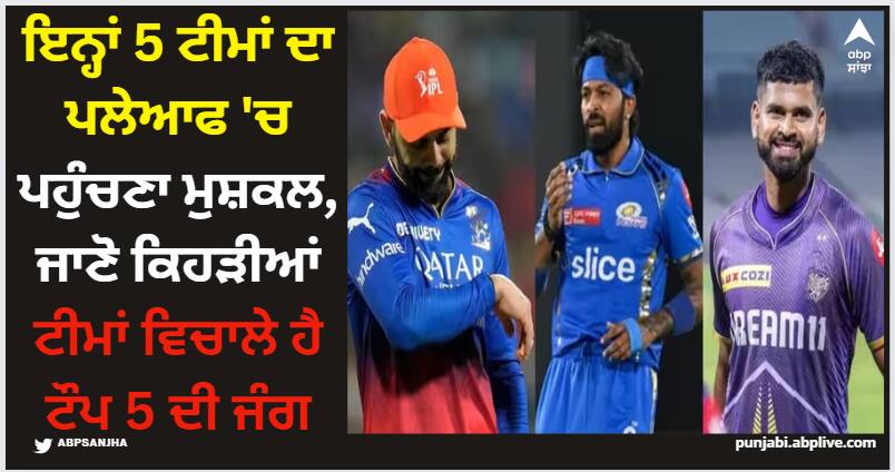 ਇਨ੍ਹਾਂ ਟੀਮਾਂ ਦੀ ਵਧ ਰਹੀ ਮੁਸ਼ਕਲਾਂਖਾਸ ਤੌਰ 'ਤੇ ਮੁੰਬਈ ਇੰਡੀਅਨਜ਼, ਦਿੱਲੀ ਕੈਪੀਟਲਸ ਅਤੇ ਰਾਇਲ ਚੈਲੇਂਜਰਸ ਬੈਂਗਲੁਰੂ ਨੂੰ ਹੁਣ ਤੱਕ ਸੰਘਰਸ਼ ਕਰਦੇ ਦੇਖਿਆ ਗਿਆ ਹੈ। ਇਹ ਤਿੰਨੇ ਟੀਮਾਂ ਹੁਣ ਤੱਕ ਸਿਰਫ਼ 1 ਮੈਚ ਹੀ ਜਿੱਤ ਸਕੀਆਂ ਹਨ ਅਤੇ ਅੰਕ ਸੂਚੀ ਵਿੱਚ ਸਭ ਤੋਂ ਹੇਠਲੇ ਤਿੰਨ ਸਥਾਨਾਂ 'ਤੇ ਹਨ। ਇਨ੍ਹਾਂ ਤਿੰਨਾਂ ਟੀਮਾਂ ਦੇ ਫਿਲਹਾਲ 2 ਅੰਕ ਹਨ। ਪਿਛਲੇ ਦੋ ਸੈਸ਼ਨਾਂ 'ਚ ਫਾਈਨਲ 'ਚ ਪਹੁੰਚੀ ਗੁਜਰਾਤ ਟਾਈਟਨਸ ਇਸ ਵਾਰ ਮੁਸ਼ਕਲ 'ਚ ਨਜ਼ਰ ਆ ਰਹੀ ਹੈ ਕਿਉਂਕਿ ਟੀਮ ਲਗਾਤਾਰ ਚੰਗਾ ਪ੍ਰਦਰਸ਼ਨ ਨਹੀਂ ਕਰ ਪਾ ਰਹੀ ਹੈ। ਗੁਜਰਾਤ ਇਸ ਸਮੇਂ 4 ਅੰਕਾਂ ਨਾਲ ਅੰਕ ਸੂਚੀ ਵਿੱਚ 7ਵੇਂ ਸਥਾਨ 'ਤੇ ਹੈ। ਜਦਕਿ ਪੰਜਾਬ ਕਿੰਗਜ਼ ਹਰ ਵਾਰ ਦੀ ਤਰ੍ਹਾਂ ਮੱਧਮ ਪ੍ਰਦਰਸ਼ਨ ਕਰ ਰਿਹਾ ਹੈ। ਖਾਸ ਤੌਰ 'ਤੇ ਪੰਜਾਬ ਦੀ ਬੱਲੇਬਾਜ਼ੀ ਕੋਈ ਕਿਨਾਰਾ ਨਹੀਂ ਦਿਖਾ ਰਹੀ, ਜਿਸ ਕਾਰਨ ਇਸ ਵਾਰ ਵੀ ਉਨ੍ਹਾਂ ਦੀ ਟੀਮ ਪਲੇਆਫ 'ਚ ਜਾਣ ਤੋਂ ਵਾਂਝੀ ਰਹਿ ਸਕਦੀ ਹੈ।
