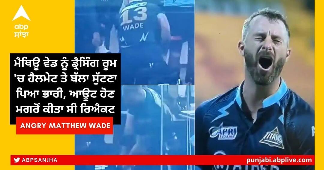 Matthew Wade Royal Challengers Bangalore vs Gujarat Titans IPL 2022: ਰਾਇਲ ਚੈਲੰਜਰਜ਼ ਬੰਗਲੌਰ ਦੇ ਖਿਲਾਫ ਖੇਡੇ ਗਏ ਮੈਚ ਵਿੱਚ ਗੁਜਰਾਤ ਟਾਈਟਨਸ 8 ਵਿਕਟਾਂ ਨਾਲ ਹਾਰ ਗਈ। ਇਸ ਮੈਚ 'ਚ ਗੁਜਰਾਤ ਦੇ ਬੱਲੇਬਾਜ਼ ਮੈਥਿਊ ਵੇਡ 16 ਦੌੜਾਂ ਦੇ ਸਕੋਰ 'ਤੇ ਆਊਟ ਹੋ ਗਏ। ਬਾਹਰ ਨਿਕਲ ਕੇ ਵੇਡ ਨੂੰ ਗੁੱਸਾ ਆ ਗਿਆ। ਫੀਲਡ ਤੋਂ ਡਰੈਸਿੰਗ ਰੂਮ ਵਿਚ ਜਾਣ ਤੋਂ ਬਾਅਦ ਉਹ ਕਾਫੀ ਗੁੱਸੇ ਵਿਚ ਨਜ਼ਰ ਆ ਰਹੇ ਸੀ। ਉਸ ਨੇ ਗੁੱਸੇ 'ਚ ਡ੍ਰੈਸਿੰਗ ਰੂਮ 'ਚ ਬੱਲਾ ਅਤੇ ਹੈਲਮੇਟ ਸੁੱਟ ਦਿੱਤਾ। ਇਹ ਕਾਰਵਾਈ ਉਨ੍ਹਾਂ ਨੂੰ ਭਾਰੀ ਮਹਿੰਗੀ ਪਈ।