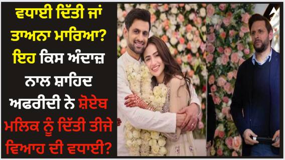 Shahid Afridi On Shoaib Malik: ਸ਼ੋਏਬ ਮਲਿਕ ਨੇ ਹਾਲ ਹੀ ਵਿੱਚ ਪਾਕਿਸਤਾਨੀ ਅਦਾਕਾਰਾ ਸਨਾ ਜਾਵੇਦ ਨਾਲ ਵਿਆਹ ਕੀਤਾ ਹੈ। ਪਾਕਿਸਤਾਨੀ ਕ੍ਰਿਕਟਰ ਦਾ ਇਹ ਤੀਜਾ ਵਿਆਹ ਸੀ। ਮਲਿਕ ਦੇ ਤੀਜੇ ਵਿਆਹ ਤੋਂ ਪਹਿਲਾਂ ਹੀ ਸ਼ੋਏਬ ਅਤੇ ਸਾਨੀਆ ਮਿਰਜ਼ਾ ਦੇ ਵੱਖ ਹੋਣ ਦੀਆਂ ਖਬਰਾਂ ਸੋਸ਼ਲ ਮੀਡੀਆ 'ਤੇ ਆਉਣ ਲੱਗੀਆਂ ਸਨ। ਸਨਾ ਜਾਵੇਦ ਨਾਲ ਵਿਆਹ ਕਰਕੇ ਸ਼ੋਏਬ ਨੇ ਸਾਨੀਆ ਮਿਰਜ਼ਾ ਤੋਂ ਵੱਖ ਹੋਣ ਦੀ ਖਬਰ ਨੂੰ ਸੱਚ ਸਾਬਤ ਕਰ ਦਿੱਤਾ। ਵਿਆਹ ਤੋਂ ਬਾਅਦ ਪਾਕਿਸਤਾਨੀ ਕ੍ਰਿਕਟਰ ਨੂੰ ਟੀਮ ਦੇ ਸਾਬਕਾ ਆਲਰਾਊਂਡਰ ਸ਼ਾਹਿਦ ਅਫਰੀਦੀ ਸਮੇਤ ਕਈ ਲੋਕਾਂ ਨੇ ਵਧਾਈ ਦਿੱਤੀ।