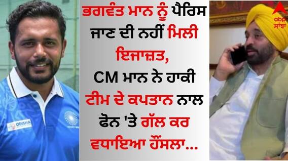 Bhagwant Mann-Harmanpreet singh: ਪੰਜਾਬ ਦੇ ਮੁੱਖ ਮੰਤਰੀ ਭਗਵੰਤ ਮਾਨ ਨੇ ਭਾਰਤੀ ਹਾਕੀ ਟੀਮ ਨੇ ਕਪਤਾਨ ਹਰਮਨਪ੍ਰੀਤ ਸਿੰਘ ਦੇ ਨਾਲ ਫੋਨ 'ਤੇ ਗੱਲਬਾਤ ਕੀਤੀ ਹੈ। ਇਸਦਾ ਵੀਡੀਓ ਉਨ੍ਹਾਂ ਸੋਸ਼ਲ ਮੀਡੀਆ ਹੈਂਡਲ ਉੱਪਰ ਸ਼ੇਅਰ ਕੀਤਾ ਹੈ। ਇਸਨੂੰ ਸ਼ੇਅਰ ਕਰਦੇ ਹੋਏ ਉਨ੍ਹਾਂ ਲਿਖਿਆ, ਅੱਜ ਹਾਕੀ ਟੀਮ ਦੇ ਕਪਤਾਨ ਹਰਮਨਪ੍ਰੀਤ ਸਿੰਘ ਨਾਲ ਫੋਨ 'ਤੇ ਗੱਲਬਾਤ ਕਰਕੇ ਉਹਨਾਂ ਦੀ ਹੌਂਸਲਾ ਅਫਜ਼ਾਈ ਕੀਤੀ... ਅਗਲੇ ਮੁਕਾਬਲੇ ਦੇਖਣ ਅਤੇ ਖਿਡਾਰੀਆਂ ਦਾ ਮਨੋਬਲ ਵਧਾਉਣ ਲਈ ਅਸੀਂ ਪੈਰਿਸ ਆਉਣਾ ਚਾਹੁੰਦੇ ਸੀ ਪਰ ਕੇਂਦਰ ਸਰਕਾਰ ਨੇ ਇਜਾਜ਼ਤ ਨਹੀਂ ਦਿੱਤੀ...ਅਸੀਂ ਦਿਲੋਂ ਤੁਹਾਡੇ ਨਾਲ ਹਾਂ... ਸਭ ਨੂੰ ਅਗਲੇ ਮੁਕਾਬਲੇ ਲਈ ਸ਼ੁੱਭਕਾਮਨਾਵਾਂ...