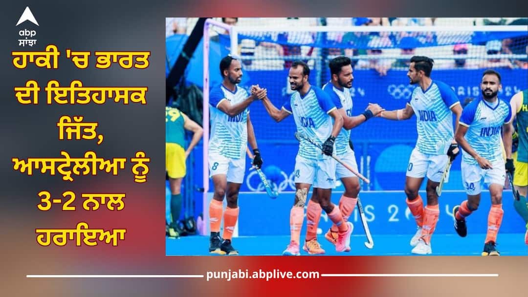Paris Olympics 2024: ਭਾਰਤ ਅਤੇ ਆਸਟ੍ਰੇਲੀਆ ਦੇ ਵਿਚਾਲੇ ਕਾਫੀ ਰੋਮਾਂਚਕ ਮੈਚ ਦੇਖਣ ਨੂੰ ਮਿਲਿਆ। ਓਲੰਪਿਕ 'ਚ ਭਾਰਤ ਅਤੇ ਆਸਟ੍ਰੇਲੀਆ ਵਿਚਾਲੇ ਖੇਡੇ ਗਏ ਮੈਚ 'ਚ ਟੀਮ ਇੰਡੀਆ ਨੇ ਹਮਲਾਵਰ ਰੁਖ ਅਪਣਾਇਆ। ਪਹਿਲੇ ਹਾਫ ਦੇ ਅੰਤ ਤੱਕ ਭਾਰਤ ਨੇ ਬੜ੍ਹਤ ਬਣਾ ਲਈ ਸੀ। ਭਾਰਤ ਨੇ ਇਹ ਮੈਚ 3-2 ਨਾਲ ਜਿੱਤਿਆ, ਭਾਰਤ ਨੇ 1972 ਤੋਂ ਬਾਅਦ ਪਹਿਲੀ ਵਾਰ ਐਸਟ੍ਰੋਟਰਫ 'ਤੇ ਆਸਟ੍ਰੇਲੀਆ ਨੂੰ ਹਰਾਇਆ।