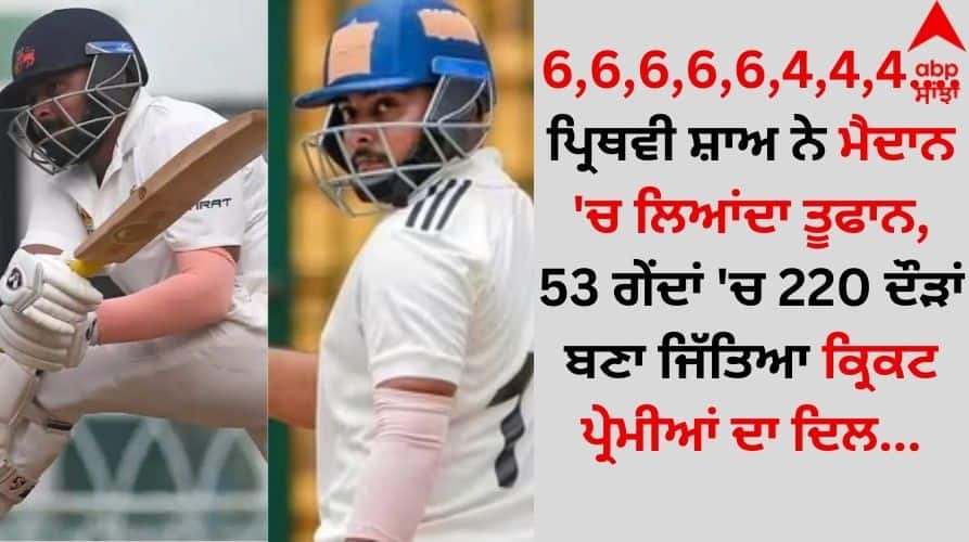 Prithvi Shaw: ਭਾਰਤ ਦੇ ਸਟਾਰ ਸਲਾਮੀ ਬੱਲੇਬਾਜ਼ਾਂ ਵਿੱਚੋਂ ਇੱਕ ਪ੍ਰਿਥਵੀ ਸ਼ਾਅ ਇਸ ਸਮੇਂ ਟੀਮ ਇੰਡੀਆ ਤੋਂ ਬਾਹਰ ਚੱਲ ਰਹੇ ਹਨ। ਪਰ ਆਪਣੀ ਦਮਦਾਰ ਬੱਲੇਬਾਜ਼ੀ ਕਾਰਨ ਉਹ ਇੱਕ ਵਾਰ ਫਿਰ ਤੋਂ ਸੁਰਖੀਆਂ ਵਿੱਚ ਆ ਗਏ ਹਨ। 24 ਸਾਲਾ ਨੌਜਵਾਨ ਸਲਾਮੀ ਬੱਲੇਬਾਜ਼ ਪ੍ਰਿਥਵੀ ਸ਼ਾਅ ਰਣਜੀ ਟਰਾਫੀ 'ਚ ਆਪਣੀ ਇਤਿਹਾਸਕ ਪਾਰੀ ਕਾਰਨ ਸੁਰਖੀਆਂ 'ਚ ਆ ਗਿਆ ਹੈ। ਤਾਂ ਆਓ ਜਾਣਦੇ ਹਾਂ ਉਨ੍ਹਾਂ ਦੀ ਇਸ ਧਮਾਕੇਦਾਰ ਪਾਰੀ ਬਾਰੇ ਖਾਸ।