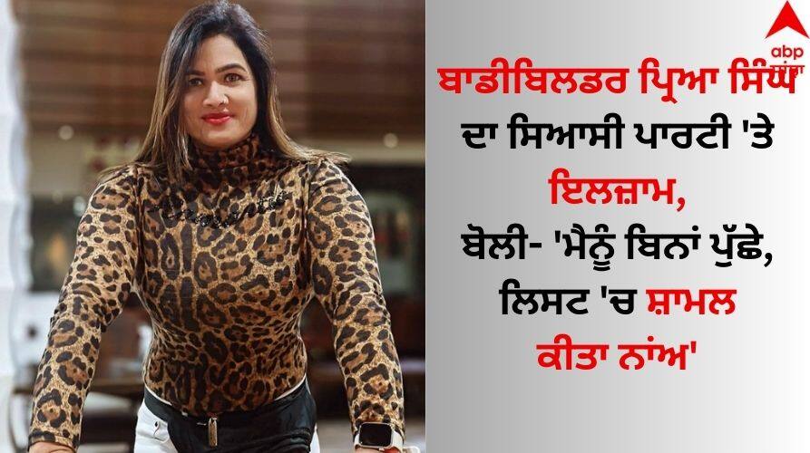Priya Singh Meghwal On BJP List: ਰਾਜਸਥਾਨ ਦੀ ਪਹਿਲੀ ਮਹਿਲਾ ਬਾਡੀ ਬਿਲਡਰ ਪ੍ਰਿਆ ਸਿੰਘ ਮੇਘਵਾਲ ਇਨ੍ਹੀਂ ਦਿਨੀਂ ਖੂਬ ਸੁਰਖੀਆਂ ਬਟੋਰ ਰਹੀ ਹੈ। ਦਰਅਸਲ, ਅੰਤਰਰਾਸ਼ਟਰੀ ਬਾਡੀ ਬਿਲਡਰ ਦਾ ਨਾਂਅ ਲੋਕ ਸਭਾ ਚੋਣਾਂ ਤੋਂ ਪਹਿਲਾਂ ਭਾਜਪਾ ਵਿਚ ਸ਼ਾਮਲ ਹੋਣ ਵਾਲੇ ਬਾਹਰੀ ਨੇਤਾਵਾਂ ਦੀ ਸੂਚੀ ਵਿੱਚ ਸ਼ਾਮਲ ਸੀ, ਹਾਲਾਂਕਿ ਉਹ ਮੰਚ 'ਤੇ ਮੌਜੂਦ ਨਹੀਂ ਸੀ। ਹੁਣ ਉਨ੍ਹਾਂ ਨੇ ਇੱਕ ਵੀਡੀਓ ਜਾਰੀ ਕਰਕੇ ਸਾਫ਼ ਕਿਹਾ ਹੈ ਕਿ ਉਹ ਭਾਜਪਾ ਵਿੱਚ ਸ਼ਾਮਲ ਨਹੀਂ ਹੋਏ ਹਨ, ਉਨ੍ਹਾਂ ਦਾ ਨਾਮ ਉਨ੍ਹਾਂ ਨੂੰ ਪੁੱਛੇ ਬਿਨਾਂ ਸੂਚੀ ਵਿੱਚ ਪਾ ਦਿੱਤਾ ਗਿਆ ਹੈ।