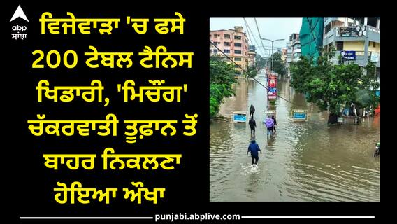 Table Tennis Tournament In Vijaywada: ਚੱਕਰਵਾਤ ਮਿਚੌਂਗ ਦਾ ਅਸਰ ਖੇਡਾਂ 'ਤੇ ਵੀ ਦੇਖਣ ਨੂੰ ਮਿਲ ਰਿਹਾ ਹੈ। ਤੂਫਾਨ ਅਤੇ ਭਾਰੀ ਮੀਂਹ ਕਾਰਨ ਵਿਜੇਵਾੜਾ 'ਚ ਕਰੀਬ 200 ਟੇਬਲ ਟੈਨਿਸ ਖਿਡਾਰੀ ਫਸੇ ਹੋਏ ਹਨ। ਇਹ ਖਿਡਾਰੀ ਇੱਥੇ ਵੱਖ-ਵੱਖ ਉਮਰ ਵਰਗਾਂ ਲਈ ਕਰਵਾਏ ਗਏ ਨੈਸ਼ਨਲ ਰੈਂਕਿੰਗ ਟੂਰਨਾਮੈਂਟ ਵਿੱਚ ਖੇਡਣ ਲਈ ਆਏ ਸਨ। ਇਹ ਟੂਰਨਾਮੈਂਟ ਸੋਮਵਾਰ ਨੂੰ ਹੀ ਖਤਮ ਹੋ ਗਿਆ ਸੀ ਪਰ ਹੁਣ ਖਿਡਾਰੀਆਂ ਨੂੰ ਮੈਦਾਨ ਤੋਂ ਬਾਹਰ ਆਉਣ ਵਿੱਚ ਮੁਸ਼ਕਿਲ ਹੋ ਰਹੀ ਹੈ। ਖਿਡਾਰੀਆਂ ਦੇ ਨਾਲ-ਨਾਲ ਉਨ੍ਹਾਂ ਦੇ ਪਰਿਵਾਰਕ ਮੈਂਬਰ ਵੀ ਸ਼ਹਿਰ ਵਿੱਚ ਫਸੇ ਹੋਏ ਹਨ।