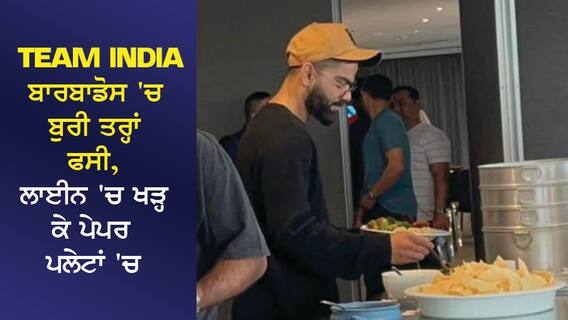 ਪੇਪਰ ਪਲੇਟਾਂ ਵਿੱਚ ਖਾਂਦੇ ਦੇਖੇ ਗਏ ਖਿਡਾਰੀਸੋਸ਼ਲ ਮੀਡੀਆ 'ਤੇ ਇਕ ਸੀਨੀਅਰ ਪੱਤਰਕਾਰ ਨੇ ਬੀ.ਸੀ.ਸੀ.ਆਈ. ਨਾਲ ਸਥਿਤੀ ਸਾਂਝੀ ਕੀਤੀ ਕਿ ਬਾਰਬਾਡੋਸ ਦੇ ਹੋਟਲ ਵਿੱਚ ਸੀਮਤ ਸਟਾਫ਼ ਹੈ ਜਿਸ ਕਾਰਨ ਭਾਰਤੀ ਟੀਮ ਦੇ ਖਿਡਾਰੀ ਕਾਗਜ਼ ਦੀਆਂ ਪਲੇਟਾਂ ਵਿੱਚ ਰਾਤ ਦਾ ਖਾਣਾ ਖਾਣ ਲਈ ਮਜਬੂਰ ਹਨ। ਇਸ ਪੋਸਟ ਵਿੱਚ ਜਾਣਕਾਰੀ ਦਿੱਤੀ ਗਈ ਹੈ ਕਿ ਟੀਮ ਇੰਡੀਆ ਦੇ ਖਿਡਾਰੀਆਂ ਨੂੰ ਲਾਈਨ ਵਿੱਚ ਖੜ੍ਹਾ ਹੋਣਾ ਪਿਆ।