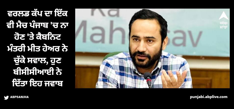 BCCI's Respond: ਭਾਰਤ ਵਿੱਚ ਖੇਡੇ ਜਾਣ ਵਾਲੇ ਇੱਕ ਰੋਜ਼ਾ ਵਿਸ਼ਵ ਕੱਪ 2023 ਦੇ ਅਧਿਕਾਰਤ ਪ੍ਰੋਗਰਾਮ ਦਾ ਐਲਾਨ ਕਰ ਦਿੱਤਾ ਗਿਆ ਹੈ। ਆਈਸੀਸੀ ਨੇ ਪਿਛਲੇ ਮੰਗਲਵਾਰ (27 ਜੂਨ) ਨੂੰ ਸ਼ਡਿਊਲ ਜਾਰੀ ਕੀਤਾ। ਵਿਸ਼ਵ ਕੱਪ ਦੇ ਮੈਚ ਭਾਰਤ ਵਿਚ 12 ਥਾਵਾਂ 'ਤੇ ਖੇਡੇ ਜਾਣਗੇ। ਪੰਜਾਬ ਦੇ ਮੁਹਾਲੀ ਕ੍ਰਿਕਟ ਸਟੇਡੀਅਮ ਨੂੰ ਸੂਚੀ ਵਿੱਚ ਸ਼ਾਮਲ ਨਹੀਂ ਕੀਤਾ ਗਿਆ, ਜਿਸ 'ਤੇ ਪੰਜਾਬ ਦੇ ਖੇਡ ਮੰਤਰੀ ਗੁਰਮੀਤ ਸਿੰਘ ਮੀਤ ਹੇਅਰ ਨੇ ਕਿਹਾ ਕਿ ਸਿਆਸੀ ਦਖਲ ਦੇ ਚਲਦੇ ਮੋਹਾਲੀ ਨੂੰ ਵਿਸ਼ਵ ਕੱਪ ਦੇ ਮੈਚ ਨਹੀਂ ਮਿਲੇ। ਹੁਣ ਬੀਸੀਸੀਆਈ ਵੱਲੋਂ ਇਸ ਪ੍ਰਤੀਕਿਰਿਆ ਦਿੱਤੀ ਗਈ ਹੈ।