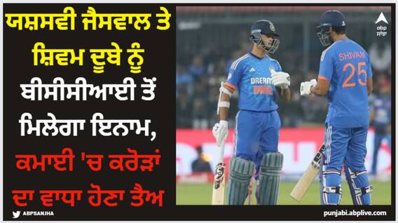 IND VS AFG: ਅਫਗਾਨਿਸਤਾਨ ਖਿਲਾਫ ਖੇਡੀ ਜਾ ਰਹੀ ਤਿੰਨ ਮੈਚਾਂ ਦੀ ਸੀਰੀਜ਼ 'ਚ ਉਨ੍ਹਾਂ ਦੇ ਸ਼ਾਨਦਾਰ ਪ੍ਰਦਰਸ਼ਨ ਤੋਂ ਬਾਅਦ ਯਸ਼ਸਵੀ ਜੈਸਵਾਲ ਅਤੇ ਸ਼ਿਵਮ ਦੂਬੇ ਦੀ ਕਿਸਮਤ ਚਮਕਣ ਵਾਲੀ ਹੈ। ਬੀਸੀਸੀਆਈ ਨੇ ਇਨ੍ਹਾਂ ਦੋਵਾਂ ਖਿਡਾਰੀਆਂ ਨੂੰ ਇਨਾਮ ਦੇਣ ਦਾ ਫੈਸਲਾ ਕੀਤਾ ਹੈ। ਯਸ਼ਸਵੀ ਜੈਸਵਾਲ ਅਤੇ ਸ਼ਿਵਮ ਦੂਬੇ ਦਾ ਇਸ ਸੀਰੀਜ਼ ਤੋਂ ਬਾਅਦ ਕੇਂਦਰੀ ਕਰਾਰ ਦੀ ਸੂਚੀ 'ਚ ਸ਼ਾਮਲ ਹੋਣਾ ਯਕੀਨੀ ਹੈ। ਬੀਸੀਸੀਆਈ ਵੱਲੋਂ ਪਿਛਲੇ ਸਾਲ ਜਦੋਂ 26 ਖਿਡਾਰੀਆਂ ਨੂੰ ਕੇਂਦਰੀ ਕਰਾਰ ਦਿੱਤਾ ਗਿਆ ਸੀ ਤਾਂ ਇਨ੍ਹਾਂ ਖਿਡਾਰੀਆਂ ਦੇ ਨਾਂ ਇਸ ਵਿੱਚ ਸ਼ਾਮਲ ਨਹੀਂ ਸਨ।