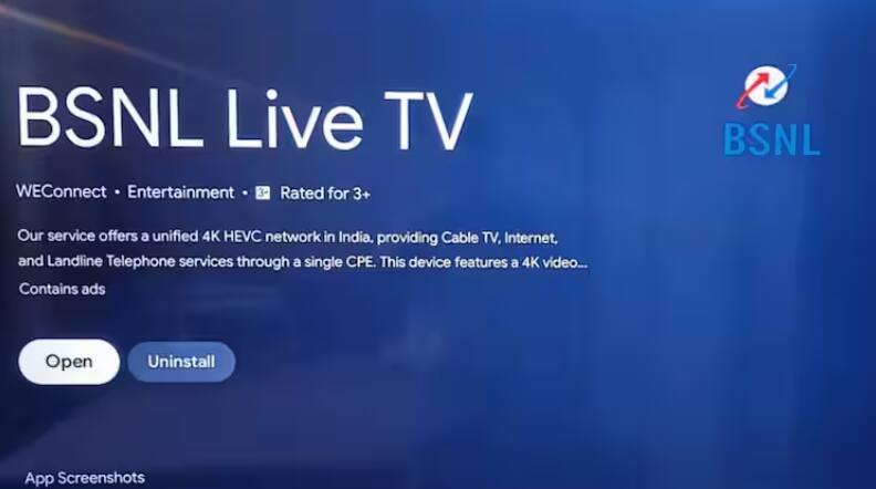 BSNL Live TV App: ਸਰਕਾਰੀ ਟੈਲੀਕਾਮ ਕੰਪਨੀ ਭਾਰਤ ਸੰਚਾਰ ਨਿਗਮ ਲਿਮਿਟੇਡ (BSNL) ਨੇ ਟੀਵੀ ਦੀ ਦੁਨੀਆ ਵਿੱਚ ਐਂਟਰੀ ਕਰ ਲਈ ਹੈ। BSNL ਨੇ 'BSNL Live TV' ਐਪਲੀਕੇਸ਼ਨ ਲਾਂਚ ਕੀਤੀ ਹੈ। ਇਹ ਐਪ ਸ਼ੁਰੂਆਤ ਵਿੱਚ Android TVs ਲਈ ਉਪਲਬਧ ਹੈ। ਇਸ ਨੂੰ ਗੂਗਲ ਪਲੇ ਸਟੋਰ ਤੋਂ ਡਾਊਨਲੋਡ ਕੀਤਾ ਜਾ ਸਕਦਾ ਹੈ। ਹਾਲਾਂਕਿ, ਇਸ ਦੀਆਂ ਬਾਕੀ ਫੀਚਰਸ ਦਾ ਹਾਲੇ ਪਤਾ ਨਹੀਂ ਲੱਗ ਸਕਿਆ ਹੈ।