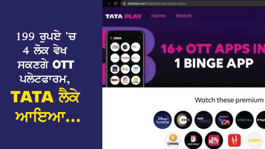 Amazon Prime, Netflix ਅਤੇ ਡਿਜ਼ਨੀ+ ਹਾਟਸਟਾਰ ਵਰਗੇ OTT ਪਲੇਟਫਾਰਮਾਂ ਦਾ ਬੋਲਬਾਲਾ ਹੈ। ਇਸੇ ਨੂੰ ਧਿਆਨ ਵਿਚ ਰੱਖਦਿਆਂ DTH ਸੇਵਾ ਪ੍ਰਦਾਨ ਕਰਨ ਵਾਲੀ Tata Play ਆਪਣੇ OTT ਗਾਹਕਾਂ ਨੂੰ ਧਿਆਨ 'ਚ ਰੱਖਦਿਆਂ ਨਵਾਂ ਆਫਰ ਲੈਕੇ ਆਈ ਹੈ।