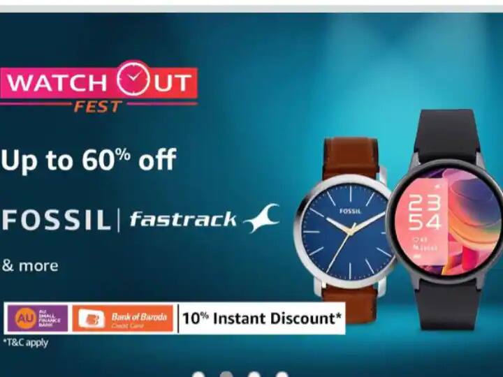 Amazon Sale On Smart watch: ਐਮਾਜ਼ਾਨ ਸਮਾਰਟ ਵਾਚ 'ਤੇ ਇੱਕ ਡੀਲ ਚੱਲ ਰਹੀ ਹੈ ਜਿਸ ਵਿੱਚ ਤੁਹਾਨੂੰ ਫੋਸਿਲ ਦੇ ਐਨਾਲਾਗ ਅਤੇ ਸਮਾਰਟ ਵਾਚ ਦੋਵਾਂ 'ਤੇ 60% ਤੱਕ ਦੀ ਛੋਟ ਮਿਲ ਰਹੀ ਹੈ। ਸੇਲ 'ਚ ਕੋਟਕ ਬੈਂਕ ਅਤੇ ਸਟੈਂਡਰਡ ਚਾਰਟਰਡ ਬੈਂਕ ਆਫ ਬੜੌਦਾ ਬੈਂਕ ਕਾਰਡਾਂ 'ਤੇ ਵੱਖਰੇ ਤੌਰ 'ਤੇ 1,500 ਰੁਪਏ ਤੱਕ ਦਾ ਤੁਰੰਤ ਕੈਸ਼ਬੈਕ ਮਿਲ ਰਿਹਾ ਹੈ। ਇਸ ਵਾਚ ਫੈਸਟ 'ਚ ਫਾਸਟਰੈਕ ਅਤੇ ਹੋਰ ਬ੍ਰਾਂਡ ਦੀਆਂ ਘੜੀਆਂ 'ਤੇ ਵੀ ਵਧੀਆ ਆਫਰ ਹਨ। ਜਾਣੋ ਵਿਕਰੀ ਵਿੱਚ ਫੋਸਿਲ ਅਤੇ ਫਾਸਟਰੈਕ ਦੀਆਂ ਸਭ ਤੋਂ ਵੱਧ ਵਿਕਣ ਵਾਲੀਆਂ ਘੜੀਆਂ 'ਤੇ ਕਿਹੜੀਆਂ ਡੀਲ ਹਨ।