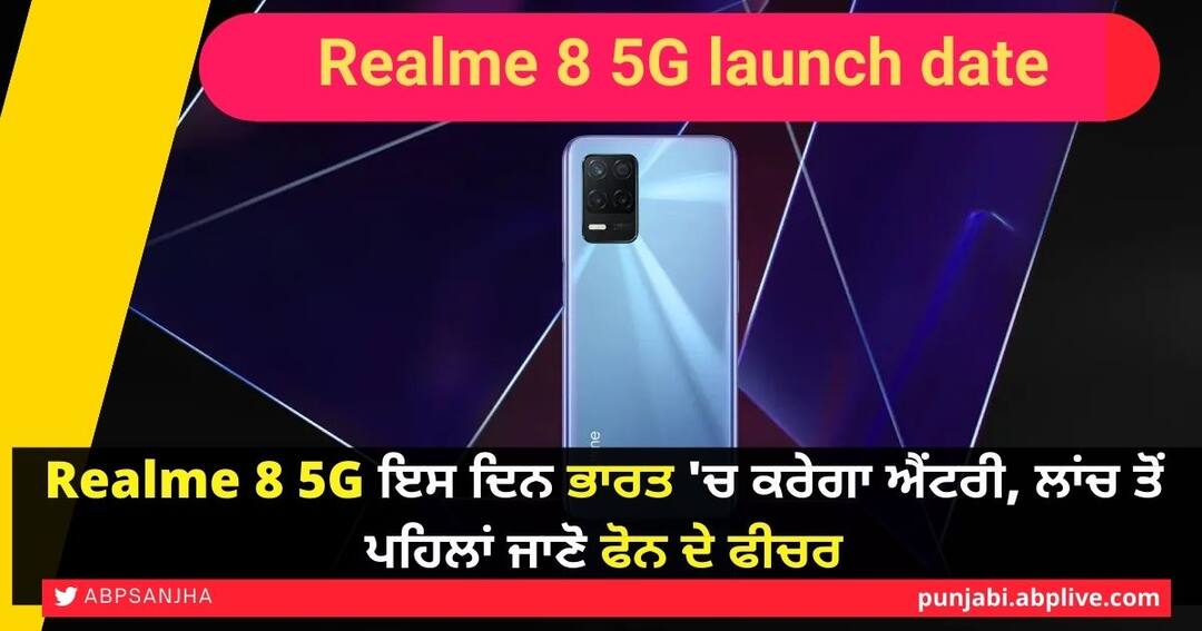 ਨਵੀਂ ਦਿੱਲੀ: ਸਮਾਰਟਫੋਨ ਕੰਪਨੀ ਰਿਅਲਮੀ ਆਪਣਾ ਨਵਾਂ ਫੋਨ Realme 8 5G ਭਾਰਤ ਵਿੱਚ ਅੱਜ 22 ਅਪ੍ਰੈਲ ਨੂੰ ਲਾਂਚ ਕਰਨ ਜਾ ਰਹੀ ਹੈ। ਫਲਿੱਪਕਾਰਟ ਉੱਤੇ ਇਸ ਸੀਰੀਜ਼ ਨੂੰ ਲੈ ਕੇ ਮਾਈਕ੍ਰੋਸਾਈਟ ਵੀ ਲਾਈਵ ਕਰ ਦਿੱਤੀ ਗਈ ਹੈ। ਹਾਲਾਂਕਿ ਉਸ ਮਾਈਕ੍ਰੋਸਾਈਟ ਉੱਤੇ ਸਮਾਰਟਫੋਨ ਸੀਰੀਜ਼ ਦੇ ਨਾਮ ਦਾ ਖੁਲਾਸਾ ਨਹੀਂ ਕੀਤਾ ਗਿਆ ਪਰ ਕਿਆਸ ਲਗਾਏ ਜਾ ਰਹੇ ਹਨ ਕਿ ਇਹ Realme 8 5G ਲਈ ਹੀ ਬਣਾਈ ਗਈ ਹੈ। ਆਓ ਜਾਣਦੇ ਹਾਂ ਫੋਨ ਦੇ ਫੀਚਰ-