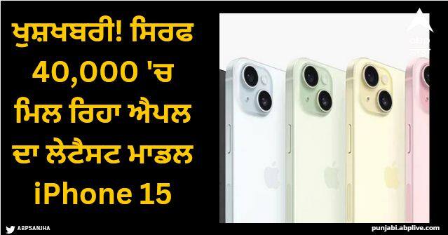 iPhone 15: ਸਿਰਲੇਖ ਨੂੰ ਪੜ੍ਹਨ ਤੋਂ ਬਾਅਦ, ਤੁਹਾਨੂੰ ਯਕੀਨ ਨਹੀਂ ਹੋਵੇਗਾ ਕਿ ਤੁਸੀਂ ਐਪਲ ਦਾ ਆਈਫੋਨ 15 ਸਿਰਫ 40,000 ਰੁਪਏ ਵਿੱਚ ਖਰੀਦ ਸਕਦੇ ਹੋ। ਪਰ ਇਹ ਬਿਲਕੁਲ ਸੱਚ ਹੈ। ਦਰਅਸਲ, ਐਪਲ ਨੇ ਇਸ ਸਾਲ ਸਤੰਬਰ ਵਿੱਚ ਆਈਫੋਨ 15 ਸੀਰੀਜ਼ ਲਾਂਚ ਕੀਤੀ ਸੀ। ਇਸ ਸੀਰੀਜ਼ ਦੇ ਤਹਿਤ ਕੰਪਨੀ ਨੇ iPhone 15, iPhone 15 Plus, iPhone 15 Pro ਅਤੇ iPhone 15 Pro Max ਸਮਾਰਟਫੋਨ ਲਾਂਚ ਕੀਤੇ ਸਨ। ਇਹ ਸੀਰੀਜ਼ 79,900 ਰੁਪਏ ਤੋਂ ਸ਼ੁਰੂ ਹੁੰਦੀ ਹੈ ਅਤੇ 2 ਲੱਖ ਰੁਪਏ ਤੱਕ ਜਾਂਦੀ ਹੈ। ਹਾਲਾਂਕਿ ਐਕਸਚੇਂਜ ਆਫਰ ਅਤੇ ਬੈਂਕ ਆਫਰ ਦਾ ਫਾਇਦਾ ਐਪਲ ਦੇ ਆਈਫੋਨ 15 'ਤੇ ਈ-ਕਾਮਰਸ ਵੈੱਬਸਾਈਟ ਅਮੇਜ਼ਨ ਅਤੇ ਫਲਿੱਪਕਾਰਟ 'ਤੇ ਦਿੱਤਾ ਜਾ ਰਿਹਾ ਹੈ। ਤੁਸੀਂ ਕੰਪਨੀ ਦਾ ਨਵਾਂ ਮਾਡਲ ਸਸਤੇ 'ਚ ਖਰੀਦ ਸਕਦੇ ਹੋ।