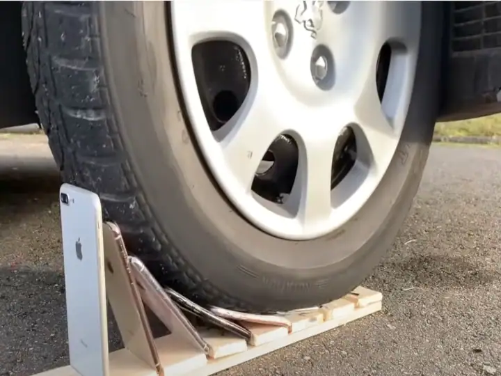 ਇਸ ਟੈਸਟ ਲਈ ਪਹਿਲਾਂ 8 ਆਈਫੋਨਾਂ ਨੂੰ ਇਕ ਟਰੇਅਚ ਰੱਖ ਕੇ ਸੜਕ 'ਤੇ ਰੱਖ ਦਿੱਤਾ ਗਿਆ ਅਤੇ ਕਾਰ ਦੇ ਟਾਇਰਾਂ ਹੇਠਾਂ ਦਿੱਤਾ ਗਿਆ। ਕਾਰ ਨੂੰ ਪਹਿਲਾਂ ਸਾਹਮਣੇ ਤੋਂ ਅਤੇ ਫਿਰ ਪਿੱਛੇ ਤੋਂ ਫੋਨ 'ਤੇ ਲਗਾਇਆ ਗਿਆ ਸੀ। ਫੋਨ ਦਾ ਕੀ ਹੁੰਦਾ ਹੈ ਇਹ ਜਾਣਨ ਲਈ ਦੇਖੋ ਪੂਰੀ ਵੀਡੀਓ।