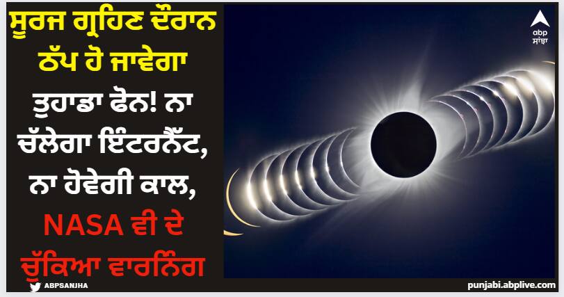Solar Eclipse 2024: ਇਸ ਸਾਲ ਅਪ੍ਰੈਲ ਮਹੀਨੇ ਵਿੱਚ ਲੱਗਣ ਵਾਲੇ ਕੁੱਲ ਸੂਰਜ ਗ੍ਰਹਿਣ ਨੂੰ ਲੈ ਕੇ ਕਈ ਚੇਤਾਵਨੀਆਂ ਜਾਰੀ ਕੀਤੀਆਂ ਗਈਆਂ ਹਨ। 8 ਅਪ੍ਰੈਲ, 2024 ਨੂੰ ਹੋਣ ਵਾਲਾ ਸੂਰਜ ਗ੍ਰਹਿਣ ਪੂਰੇ ਉੱਤਰੀ ਅਮਰੀਕਾ ਵਿੱਚ ਫੈਲ ਜਾਵੇਗਾ। ਇਹ ਮੈਕਸੀਕੋ, ਸੰਯੁਕਤ ਰਾਜ ਅਤੇ ਕੈਨੇਡਾ ਦੇ ਉੱਪਰੋਂ ਲੰਘੇਗਾ। ਅਜਿਹੀ ਸਥਿਤੀ ਵਿੱਚ, ਇੱਕ ਚੇਤਾਵਨੀ ਜਾਰੀ ਕੀਤੀ ਗਈ ਹੈ ਕਿ ਪੂਰਨ ਸੂਰਜ ਗ੍ਰਹਿਣ ਦੌਰਾਨ ਮੋਬਾਈਲ ਫੋਨ ਕੰਮ ਕਰਨਾ ਬੰਦ ਕਰ ਸਕਦੇ ਹਨ। ਇਹ ਸੂਰਜ ਗ੍ਰਹਿਣ ਭਾਰਤ ਵਿੱਚ ਨਹੀਂ ਦਿਖਾਈ ਦੇਵੇਗਾ।