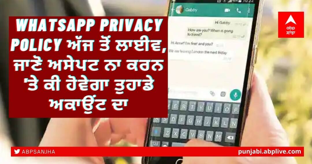 ਵਾਰਵਾਰ ਰੀਮਾਈਂਡਰ ਭੇਜਣ ਤੋਂ ਬਾਅਦ ਜਿਹੜੇ ਯੂਜ਼ਰ ਨਵੀਂ ਪ੍ਰਾਈਵੇਸੀ ਨੀਤੀ ਨੂੰ ਸਵੀਕਾਰ ਨਹੀਂ ਕਰਦੇ, ਆਖਰ 'ਚ ਇਨਐਕਟੀਵ ਯੂਜ਼ਰਸ ਸਬੰਧਿਤ ਵ੍ਹੱਟਸਐਪ ਦੀ ਨੀਤੀ ਨੂੰ ਲਾਗੂ ਕਰਨਗੇ।