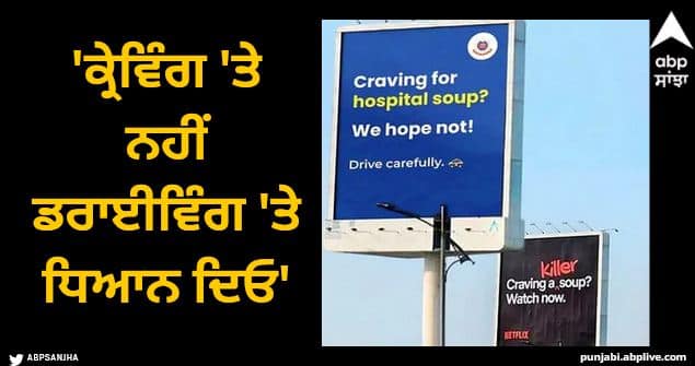 ਪਹਿਲਾ ਹੋਰਡਿੰਗ ਇੱਕ Swiggy ਵਿਗਿਆਪਨ ਦਾ ਹੈ, ਜੋ ਡਰਾਈਵਰਾਂ ਨੂੰ ਆਪਣੀ ਲਾਲਸਾ ਨੂੰ ਪੂਰਾ ਕਰਨ ਲਈ ਸੂਪ ਦਾ ਇੱਕ ਕਟੋਰਾ ਮੰਗਵਾਉਣ ਲਈ ਕਹਿੰਦਾ ਹੈ। ਇਸ ਤੋਂ ਬਾਅਦ ਦੂਜਾ ਹੋਰਡਿੰਗ ਵੀ ਇੱਕ ਵਿਗਿਆਪਨ ਹੈ, ਜਿਸ 'ਚ 'ਕਿਲਰ ਸੂਪ' ਨਾਂ ਦੀ ਨੈੱਟਫਲਿਕਸ ਸੀਰੀਜ਼ ਦੇਖਣ ਦੀ ਅਪੀਲ ਹੈ। ਇਸ ਦੇ ਬਿਲਕੁਲ ਸਾਹਮਣੇ ਦਿੱਲੀ ਪੁਲਿਸ ਨੇ ਆਪਣਾ ਹੋਰਡਿੰਗ ਲਗਾਇਆ ਹੈ, ਜਿਸ 'ਤੇ ਲਿਖਿਆ ਹੈ, ਹਸਪਤਾਲ ਦੇ ਸੂਪ ਲਈ ਕ੍ਰੇਵਿੰਗ ਹੋ ਰਹੀ ਹੈ, ਉਮੀਦ ਹੈ ਕਿ ਅਜਿਹਾ ਨਾ ਹੋਵੇ। ਇਸ ਲਈ ਸੁਰੱਖਿਅਤ ਢੰਗ ਨਾਲ ਗੱਡੀ ਚਲਾਓ।