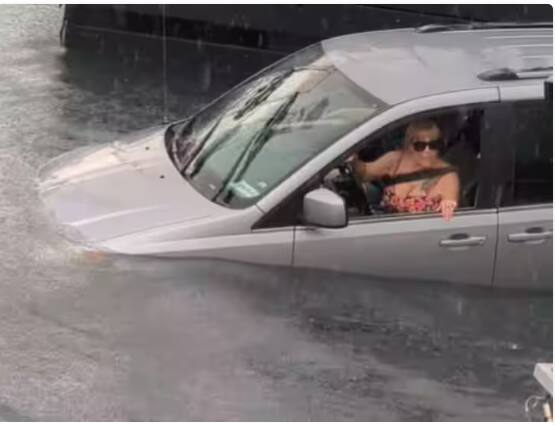 ਔਰਤਾਂ ਦੀ ਕਾਰ ਡੂੰਘੇ ਪਾਣੀ ਵਿੱਚ ਡਿੱਗ ਗਈ ਸੀ। ਇੱਥੋਂ ਤੱਕ ਕਿ ਉਸ ਦੀ ਕਾਰ ਦੀ ਹੈੱਡਲਾਈਟ ਵੀ ਪਾਣੀ ਵਿੱਚ ਡੁੱਬ ਗਈ ਸੀ। ਇਸ ਸਾਰੀ ਘਟਨਾ ਨੂੰ ਕ੍ਰਿਸਟੀ ਹਚਿਨਸਨ ਨਾਂ ਦੀ ਸਥਾਨਕ ਔਰਤ ਨੇ ਆਪਣੇ ਕੈਮਰੇ ਵਿੱਚ ਕੈਦ ਕਰ ਲਿਆ। ਕ੍ਰਿਸਟੀ ਹਚਿਨਸਨ ਨੇ ਮੀਡੀਆ ਨੂੰ ਦੱਸਿਆ ਕਿ ਮੈਂ ਸਿਰਫ਼ ਮੀਂਹ ਤੋਂ ਬਚਣ ਦੀ ਕੋਸ਼ਿਸ਼ ਕਰ ਰਹੀ ਸੀ। ਉਸੇ ਸਮੇਂ ਮੈਂ ਦੇਖਿਆ ਕਿ ਇਕ ਕਾਰ ਸਿੱਧੀ ਪਾਣੀ ਵਿਚ ਜਾ ਡਿੱਗੀ।ਉਸ ਨੂੰ ਦੇਖ ਕੇ ਲੱਗਦਾ ਸੀ ਕਿ ਉਸ ਦੇ ਚਿਹਰੇ 'ਤੇ ਘਬਰਾਹਟ ਦਾ ਕੋਈ ਪ੍ਰਗਟਾਵਾ ਨਹੀਂ ਸੀ। ਕਾਰ 'ਚ ਮੌਜੂਦ ਦੋਵੇਂ ਔਰਤਾਂ ਹੱਸ ਰਹੀਆਂ ਸਨ। ਲੋਕਾਂ ਨੇ ਉਨ੍ਹਾਂ ਦਾ ਬਚਾਅ ਕਰਨ ਵੈਨ ਨੂੰ ਰੱਸੀਆਂ ਪਾਈਆਂ ਤੇ ਬੁਆਏ ਦੀ ਵਰਤੋਂ ਕੀਤੀ।