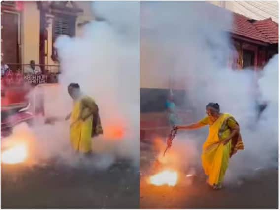 ਵਾਇਰਲ ਹੋ ਰਿਹਾ ਇਹ ਵੀਡੀਓ ਕੇਰਲ (Keral Viral Video) ਦਾ ਦੱਸਿਆ ਜਾ ਰਿਹਾ ਹੈ, ਜਿਸ ਵਿੱਚ ਇੱਕ ਬਜ਼ੁਰਗ ਔਰਤ ਪਟਾਕਿਆਂ ਦੀ ਇੱਕ ਵੱਡੀ ਲੜੀ ਫੜੀ ਹੋਈ ਹੈ ਅਤੇ ਇਸਨੂੰ ਆਪਣੇ ਹੱਥ ਵਿੱਚ ਲੈ ਕੇ ਤੁਰਦੀ ਹੋਈ ਦਿਖਾਈ ਦੇ ਰਹੀ ਹੈ ਤੇ ਪਟਾਕੇ ਚਲਾਉਂਦੀ ਨਜ਼ਰ ਆ ਰਹੀ ਹੈ। ਪਟਾਕਿਆਂ ਨੂੰ ਆਮ ਤੌਰ 'ਤੇ ਕਿਸੇ ਵੀ ਅਣਸੁਖਾਵੀਂ ਘਟਨਾ ਤੋਂ ਬਚਾਉਣ ਲਈ ਇਕ ਜਗ੍ਹਾ 'ਤੇ ਰੱਖ ਕੇ ਵਜਾਇਆ ਜਾਂਦਾ ਹੈ, ਪਰ ਵੀਡੀਓ ਵਿਚ ਨਜ਼ਰ ਆ ਰਹੀ ਬਜ਼ੁਰਗ ਅੰਮਾ ਨੂੰ ਖਤਰੇ ਦੀ ਖਿਡਾਰਨ ਵਜੋਂ ਅਤੇ ਖੁਸ਼ੀ ਨਾਲ ਆਪਣੇ ਹੱਥਾਂ ਵਿਚ ਪਟਾਕੇ ਚਲਾਉਂਦੇ ਦੇਖਿਆ ਜਾ ਸਕਦਾ ਹੈ। ਸਾੜੀ ਪਾ ਕੇ ਇਹ ਬਜ਼ੁਰਗ ਔਰਤ ਸੜਕ ਕਿਨਾਰੇ ਪਟਾਕਿਆਂ ਨਾਲ ਸਟੰਟ ਕਰਦੀ ਨਜ਼ਰ ਆ ਰਹੀ ਹੈ, ਜਿਸ ਨੂੰ ਦੇਖ ਕੇ ਕੋਈ ਯੂਜਰਜ਼ ਵੀ ਹੈਰਾਨ ਰਹਿ ਗਏ।