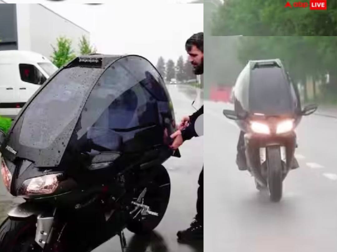Trending Video: ਬਰਸਾਤ ਦਾ ਮੌਸਮ ਚੱਲ ਰਿਹਾ ਹੈ। ਅਜਿਹੀ ਸਥਿਤੀ ਵਿੱਚ ਲੋਕ ਬਾਹਰ ਜਾਣ ਲਈ ਜਾਂ ਤਾਂ ਕਾਰ ਦੀ ਵਰਤੋਂ ਕਰਦੇ ਹਨ ਜਾਂ ਜਨਤਕ ਟਰਾਂਸਪੋਰਟ ਦੀ ਵਰਤੋਂ ਕਰਦੇ ਹਨ। ਅਜਿਹੇ 'ਚ ਸੋਸ਼ਲ ਮੀਡੀਆ 'ਤੇ ਇਕ ਵੀਡੀਓ ਵਾਇਰਲ ਹੋ ਰਿਹਾ ਹੈ, ਜਿਸ 'ਚ ਇਨ੍ਹਾਂ ਸਾਰੀਆਂ ਸਮੱਸਿਆਵਾਂ ਦਾ ਹੱਲ ਹੁੰਦਾ ਨਜ਼ਰ ਆ ਰਿਹਾ ਹੈ। ਵਾਇਰਲ ਵੀਡੀਓ 'ਚ ਇਕ ਵਿਅਕਤੀ ਨੇ ਬਾਈਕ ਨੂੰ ਇਸ ਤਰ੍ਹਾਂ ਮੋਡੀਫਾਈ ਕੀਤਾ ਹੈ ਕਿ ਇਹ ਬਾਈਕ ਨੂੰ ਕਾਰ ਦਾ ਰੂਪ ਦੇ ਦਿੰਦਾ ਹੈ। ਆਦਮੀ ਦੇ ਮੋਟਰਸਾਈਕਲ 'ਤੇ ਇੱਕ ਵੱਡਾ ਹੈਲਮੇਟ ਵਰਗਾ ਕਵਰ ਲਗਾਇਆ ਹੈ, ਇਹ ਇੰਨਾ ਵੱਡਾ ਹੈ ਕਿ ਇੱਕ ਆਦਮੀ ਆਰਾਮ ਨਾਲ ਇਸ ਵਿੱਚ ਫਿੱਟ ਹੋ ਸਕਦਾ ਹੈ। ਇਹ ਕਵਰ ਬਾਈਕਰ ਨੂੰ ਮੀਂਹ ਅਤੇ ਧੁੱਪ ਤੋਂ ਬਚਾਉਂਦਾ ਹੈ। ਬਾਈਕ ਦਾ ਇਹ ਵੀਡੀਓ ਹੁਣ ਸੋਸ਼ਲ ਮੀਡੀਆ 'ਤੇ ਤੇਜ਼ੀ ਨਾਲ ਵਾਇਰਲ ਹੋ ਰਿਹਾ ਹੈ।