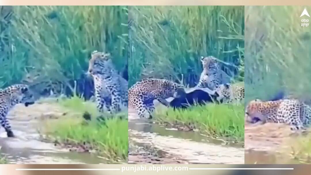 ਹਾਲ ਹੀ 'ਚ ਸੋਸ਼ਲ ਮੀਡੀਆ 'ਤੇ ਜੰਗਲੀ ਜੀਵ ਦਾ ਇਕ ਵੀਡੀਓ ਸਾਹਮਣੇ ਆਇਆ ਹੈ, ਜਿਸ 'ਚ ਤਿੰਨ ਭਿਆਨਕ ਚੀਤੇ ਇਕੱਠੇ ਇਕ ਛੋਟੇ ਜੀਵ ਦਾ ਸ਼ਿਕਾਰ ਕਰਨ ਦੀ ਕੋਸ਼ਿਸ਼ ਕਰਦੇ ਨਜ਼ਰ ਆ ਰਹੇ ਹਨ। ਇਸ ਸਮੇਂ, ਸ਼ਕਤੀਸ਼ਾਲੀ ਹੋਣ ਦੇ ਬਾਵਜੂਦ, ਉਹ ਉਸ ਜੀਵ ਨੂੰ ਹਰਾਉਣ ਵਿੱਚ ਅਸਮਰੱਥ ਹੁੰਦੇ ਹੋਏ ਦਿਖਾਈ ਦੇ ਰਹੇ ਹਨ।