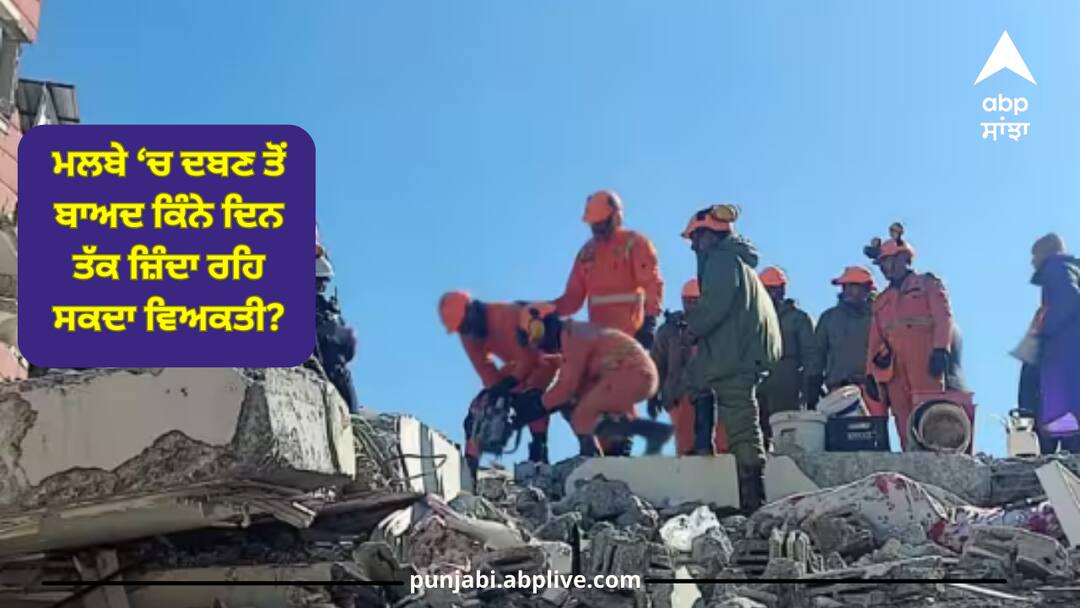 ਆਮ ਤੌਰ 'ਤੇ ਨਿਯਮ ਇਹ ਕਹਿੰਦਾ ਹੈ ਕਿ ਜੇਕਰ ਪਹਿਲੇ ਜਾਂ ਦੂਜੇ ਦਿਨ ਕੋਈ ਵੀ ਜ਼ਿੰਦਾ ਨਹੀਂ ਮਿਲਿਆ, ਤਾਂ ਬਚਾਅ ਕਾਰਜ ਪੰਜ ਤੋਂ ਸੱਤ ਦਿਨਾਂ ਦੇ ਅੰਦਰ ਬੰਦ ਕਰ ਦੇਣਾ ਚਾਹੀਦਾ ਹੈ। ਭਾਵ ਇਨਸਾਨ 7 ਦਿਨਾਂ ਤੱਕ ਜ਼ਿੰਦਾ ਰਹਿ ਸਕਦਾ ਹੈ। ਹਾਲਾਂਕਿ ਇਦਾਂ ਨਹੀਂ ਹੋਇਆ ਹੈ ਕਿ ਇਸ ਤੋਂ ਵੱਧ ਸਮਾਂ ਬੀਤ ਜਾਣ ਤੋਂ ਬਾਅਦ ਵੀ ਲੋਕ ਜ਼ਿੰਦਾ ਨਹੀਂ ਮਿਲੇ ਹਨ, ਪਰ ਅਜਿਹਾ ਕਈ ਮਾਮਲਿਆਂ 'ਚ ਦੇਖਿਆ ਗਿਆ ਹੈ ਕਿ ਦੋ-ਤਿੰਨ ਹਫਤਿਆਂ ਬਾਅਦ ਵੀ ਮਲਬੇ 'ਚੋਂ ਲੋਕਾਂ ਨੂੰ ਜ਼ਿੰਦਾ ਬਾਹਰ ਕੱਢਿਆ ਗਿਆ ਹੈ।