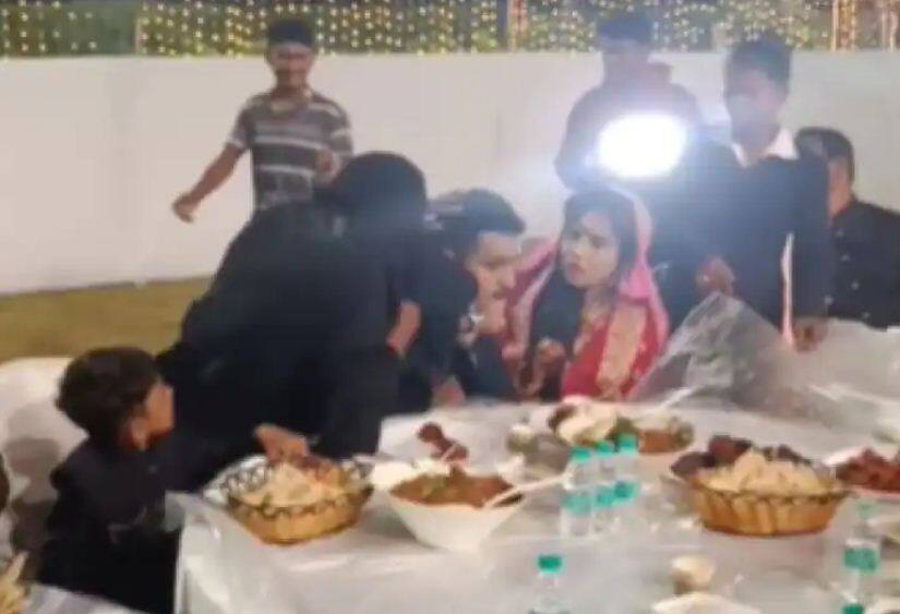 ਵਾਇਰਲ ਹੋ ਰਹੀ ਕੁਝ ਸਕਿੰਟਾਂ ਦੀ ਵੀਡੀਓ 'ਚ ਦੇਖਿਆ ਜਾ ਸਕਦਾ ਹੈ ਕਿ ਲਾੜਾ-ਲਾੜੀ ਦਾ ਵਿਆਹ ਹੋ ਗਿਆ ਹੈ। ਦੋਵੇਂ ਡਾਇਨਿੰਗ ਟੇਬਲ 'ਤੇ ਬੈਠੇ ਹਨ ਅਤੇ ਭੋਜਨ ਦਾ ਆਨੰਦ ਲੈ ਰਹੇ ਹਨ। ਵੀਡੀਓ 'ਚ ਇਸ ਸਮੇਂ ਸਭ ਕੁਝ ਸਾਧਾਰਨ ਲੱਗ ਰਿਹਾ ਹੈ। ਅਚਾਨਕ ਕਾਲੇ ਰੰਗ ਦਾ ਬੁਰਕਾ ਪਹਿਨ ਕੇ ਰੋਂਦੀ ਹੋਈ ਲੜਕੀ ਦੀ ਐਂਟਰੀ ਹੋਈ। ਉਹ ਰੋਂਦੀ ਹੋਈ ਲਾੜੇ ਨੂੰ ਜੱਫੀ ਪਾ ਲੈਂਦੀ ਹੈ। ਲਾੜੇ ਨਾਲ ਕਿਸੇ ਦੂਜੀ ਲੜਕੀ ਨੂੰ ਇਸ ਤਰ੍ਹਾਂ ਦੇਖ ਕੇ ਆਲੇ-ਦੁਆਲੇ ਮੌਜੂਦ ਸਾਰਿਆਂ ਦੀਆਂ ਅੱਖਾਂ ਅੱਡੀਆਂ ਰਹਿ ਜਾਂਦੀਆਂ ਹਨ। ਕੋਲ ਬੈਠੀ ਲਾੜੀ ਵੀ ਅੰਦਰੋਂ ਹਿੱਲ ਗਈ। ਲਾੜੇ ਨੂੰ ਸਮਝ ਨਹੀਂ ਆ ਰਿਹਾ ਸੀ ਕਿ ਕੀ ਹੋ ਰਿਹਾ ਹੈ?