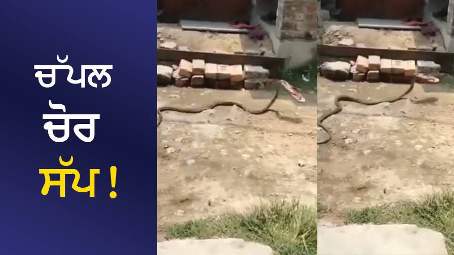 ਮੂੰਹ ਵਿੱਚ ਚੱਪਲ ਲੈ ਕੇ ਭੱਜਿਆ ਕੋਬਰਾ:ਵੀਡੀਓ 'ਚ ਦੇਖਿਆ ਜਾ ਸਕਦਾ ਹੈ ਕਿ ਜਦੋਂ ਔਰਤ ਚੱਪਲ ਸੁੱਟ ਕੇ ਸੱਪ ਨੂੰ ਮਾਰਦੀ ਹੈ ਤਾਂ ਸੱਪ ਚੱਪਲ ਨੂੰ ਮੂੰਹ 'ਚ ਦਬਾ ਲੈਂਦਾ ਹੈ ਅਤੇ ਭੱਜਣ ਲੱਗ ਪੈਂਦਾ ਹੈ। ਔਰਤ ਆਪਣੀਆਂ ਚੱਪਲਾਂ ਲੈਣ ਲਈ ਕੋਬਰਾ ਦੇ ਪਿੱਛੇ ਭੱਜਦੀ ਹੈ। ਮਹਿਲਾ ਦੀ ਧੀ ਆਪਣੇ ਮੋਬਾਈਲ ਨਾਲ ਇਸ ਘਟਨਾ ਦੀ ਵੀਡੀਓ ਬਣਾ ਰਹੀ ਹੁੰਦੀ ਹੈ। ਕੁਝ ਦੂਰ ਜਾਣ ਤੋਂ ਬਾਅਦ ਸੱਪ ਮੂੰਹ ਵਿੱਚ ਚੱਪਲ ਲੈ ਕੇ ਨੇੜਲੇ ਖਾਲੀ ਪਲਾਟ ਵਿੱਚ ਵੜ ਜਾਂਦਾ ਹੈ। ਸੱਪ ਨੂੰ ਇਸ ਤਰ੍ਹਾਂ ਚੱਪਲਾਂ ਚੋਰੀ ਕਰਦੇ ਦੇਖ ਔਰਤ ਅਤੇ ਉਸ ਦੀ ਧੀ ਕਾਫੀ ਹੱਸਦੇ ਹਨ।