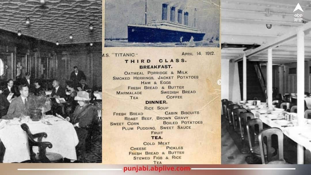 titanic menu pics viral: ਕੁਝ ਅਜਿਹੀਆਂ ਇਤਿਹਾਸਿਕ ਘਟਨਾਵਾਂ ਹੁੰਦੀਆਂ ਨੇ, ਜਿਨ੍ਹਾਂ ਦੀ ਚਰਚਾ ਹਮੇਸ਼ਾ ਹੁੰਦੀ ਰਹਿੰਦੀ ਹੈ। ਗੱਲ ਕਰ ਰਹੇ ਹਾਂ ਟਾਈਟੈਨਿਕ ਜਹਾਜ਼ ਦੀ। ਇਸ ਸਾਲ ਟਾਈਟੈਨਿਕ ਜਹਾਜ਼ ਦੇ ਡੁੱਬਣ ਨੂੰ 111 ਸਾਲ ਬੀਤ ਚੁੱਕੇ ਹਨ। ਇਸ ਘਟਨਾ ਨੂੰ ਮਨੁੱਖੀ ਇਤਿਹਾਸ ਵਿਚ ਸਭ ਤੋਂ ਘਾਤਕ ਹਾਦਸੇ ਵਜੋਂ ਦਰਜ ਕੀਤਾ ਗਿਆ ਸੀ। ਇਸ ਹਾਦਸੇ ਵਿੱਚ 1500 ਤੋਂ ਜ਼ਿਆਦਾ ਲੋਕ ਮਾਰੇ ਗਏ। ਦੱਸਣਯੋਗ ਹੈ ਕਿ 1997 ਵਿੱਚ ਇਸ ਜਹਾਜ਼ ਉੱਤੇ ਇੱਕ ਫਿਲਮ ਵੀ ਬਣੀ ਜਿਸਨੇ ਇਸ ਜਹਾਜ਼ ਨੂੰ ਮਸ਼ਹੂਰ ਕਰ ਦਿੱਤਾ। ਹੁਣ ਇੱਕ ਵਾਰ ਫਿਰ ਸੋਸ਼ਲ ਮੀਡੀਆ 'ਤੇ ਟਾਈਟੈਨਿਕ ਦੀ ਚਰਚਾ ਹੈ। ਇਤਿਹਾਸ ਦੇ ਇਸ ਸਭ ਤੋਂ ਆਲੀਸ਼ਾਨ ਜਹਾਜ਼ ਵਿੱਚ ਸਭ ਕੁਝ ਖਾਸ ਸੀ।