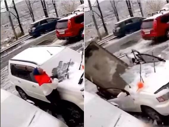 ਵੀਡੀਓ ਨੂੰ ਸੋਸ਼ਲ ਮੀਡੀਆ ਦੇ ਕਈ ਪਲੇਟਫਾਰਮਾਂ 'ਤੇ ਸ਼ੇਅਰ ਕੀਤਾ ਗਿਆ ਹੈ। ਜਿਸ ਨੂੰ ਟਵਿੱਟਰ 'ਤੇ @wpeoplesurvive ਨਾਮ ਦੇ ਅਕਾਊਂਟ 'ਤੇ ਪੋਸਟ ਕੀਤਾ ਗਿਆ ਹੈ। ਇਸ ਵੀਡੀਓ 'ਚ ਇੱਕ ਵਿਅਕਤੀ ਆਪਣੇ ਵਾਹਨ 'ਤੇ ਡਿੱਗੀ ਬਰਫ ਨੂੰ ਸਾਫ ਕਰਦਾ ਨਜ਼ਰ ਆ ਰਿਹਾ ਹੈ। ਜਿਸ ਦੌਰਾਨ ਉਹ ਇੱਕ ਰੌਲਾ ਸੁਣਦਾ ਹੈ ਅਤੇ ਇਮਾਰਤ ਵਿੱਚ ਉੱਪਰ ਵੱਲ ਦੇਖਦਾ ਹੋਇਆ ਤੇਜ਼ੀ ਨਾਲ ਪਿੱਛੇ ਹਟ ਜਾਂਦਾ ਹੈ। ਇਸ ਦੇ ਨਾਲ ਹੀ ਕੋਈ ਵੱਡੀ ਚੀਜ਼ ਉਸ 'ਤੇ ਡਿੱਗਦੇ ਹੀ ਉਸ ਦੇ ਵਾਹਨ ਨੂੰ ਉਡਾ ਦਿੰਦੀ ਹੈ।
