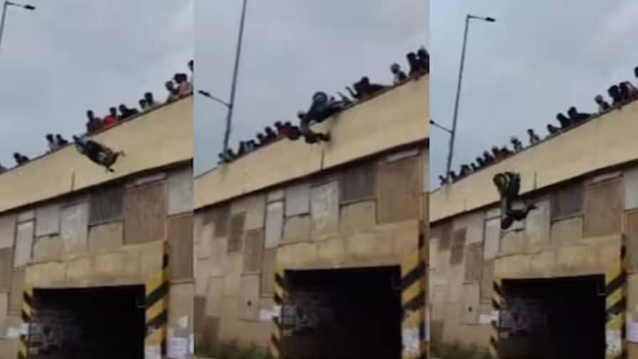 ਵੀਡੀਓ ਬੈਂਗਲੁਰੂ ਨੇੜੇ ਤੁਮਕੁਰ ਹਾਈਵੇਅ ਫਲਾਈਓਵਰ ਦਾ ਹੈ ਜਿੱਥੇ ਬਹੁਤ ਸਾਰੇ ਲੋਕ ਇਕੱਠੇ ਹੋਏ ਹਨ। ਜਿਸ 'ਚ ਹਾਈਵੇ 'ਤੇ ਇਕੱਠੇ ਹੋਏ ਲੋਕ ਇਕ-ਇਕ ਕਰਕੇ ਮੋਟਰ ਸਾਈਕਲਾਂ ਨੂੰ ਸੁੱਟਦੇ ਨਜ਼ਰ ਆ ਰਹੇ ਹਨ। ਇਹ ਵੀਡੀਓ ਕੁਝ ਦੂਰੀ ਤੋਂ ਫਲਾਈਓਵਰ ਦੇ ਹੇਠਾਂ ਖੜ੍ਹੇ ਇੱਕ ਵਿਅਕਤੀ ਨੇ ਬਣਾਈ ਹੈ। ਚੰਗੀ ਗੱਲ ਇਹ ਹੈ ਕਿ ਇਸ ਘਟਨਾ 'ਚ ਕੋਈ ਜ਼ਖਮੀ ਨਹੀਂ ਹੋਇਆ, ਕਿਉਂਕਿ ਫਲਾਈਓਵਰ ਦੇ ਹੇਠਾਂ ਸੜਕ 'ਤੇ ਕਈ ਲੋਕ ਆ ਰਹੇ ਸਨ।