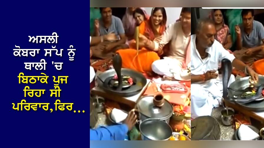 ਵੀਡੀਓ ‘ਚ ਦੇਖਿਆ ਜਾ ਸਕਦਾ ਹੈ ਕਿ ਪੰਡਿਤ ਜੀ ਰੁਦਰਾਭਿਸ਼ੇਕ ਕਰਵਾ ਰਹੇ ਹਨ। ਜੋੜਾ ਬੈਠ ਕੇ ਪੂਜਾ ਕਰ ਰਿਹਾ ਹੈ। ਪਰ ਸੋਸ਼ਲ ਮੀਡੀਆ ਯੂਜ਼ਰਸ ਉਦੋਂ ਹੈਰਾਨ ਰਹਿ ਗਏ ਜਦੋਂ ਉਨ੍ਹਾਂ ਨੇ ਥਾਲੀ ਵਿੱਚ ਅਸਲੀ ਸੱਪ ਨੂੰ ਬੈਠੇ ਦੇਖਿਆ। ਵੀਡੀਓ ‘ਚ ਤੁਸੀਂ ਦੇਖ ਸਕਦੇ ਹੋ ਕਿ ਪੂਜਾ ਦੌਰਾਨ ਸੱਪ ਵਿਅਕਤੀ ‘ਤੇ ਹਮਲਾ ਕਰ ਦਿੰਦਾ ਹੈ। ਪਰ ਹੈਰਾਨੀ ਦੀ ਗੱਲ ਇਹ ਹੈ ਕਿ ਇਸ ਤੋਂ ਬਾਅਦ ਵੀ ਇਹ ਜੋੜਾ ਪੂਜਾ-ਪਾਠ ਜਾਰੀ ਰੱਖਦਾ ਹੈ।