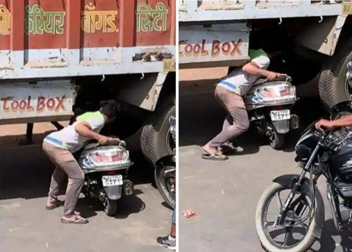ਲੋਕਾਂ ਦੇ ਗਲਤ ਤਰੀਕੇ ਨਾਲ ਵਾਹਨ ਚਲਾਉਣ ਕਾਰਨ ਅਕਸਰ ਸੜਕਾਂ 'ਤੇ ਜਾਮ ਦੀ ਸਮੱਸਿਆ ਪੈਦਾ ਹੋ ਜਾਂਦੀ ਹੈ। ਇਸ ਦੌਰਾਨ ਵੀ ਕਈ ਲੋਕ ਨਿਯਮਾਂ ਨੂੰ ਛਿੱਕੇ ਟੰਗ ਕੇ ਸੜਕ ਦੇ ਦੂਜੇ ਪਾਸੇ ਤੋਂ ਜਲਦੀ ਨਿਕਲਣ ਲਈ ਵਾਹਨ ਚਲਾਉਂਦੇ ਦੇਖੇ ਜਾਂਦੇ ਹਨ। ਹਾਲ ਹੀ 'ਚ ਸਾਹਮਣੇ ਆਈ ਵੀਡੀਓ 'ਚ ਦੇਖਿਆ ਜਾ ਸਕਦਾ ਹੈ ਕਿ ਇੱਕ ਸਕੂਟੀ ਸਵਾਰ ਜਾਮ ਤੋਂ ਬਚਣ ਲਈ ਹੈਰਾਨੀਜਨਕ ਤਰੀਕੇ ਨਾਲ ਜਾਮ 'ਚ ਫਸੇ ਟਰੱਕ ਦੇ ਹੇਠਾਂ ਤੋਂ ਜਾਣ ਲੱਗਦਾ ਹੈ।