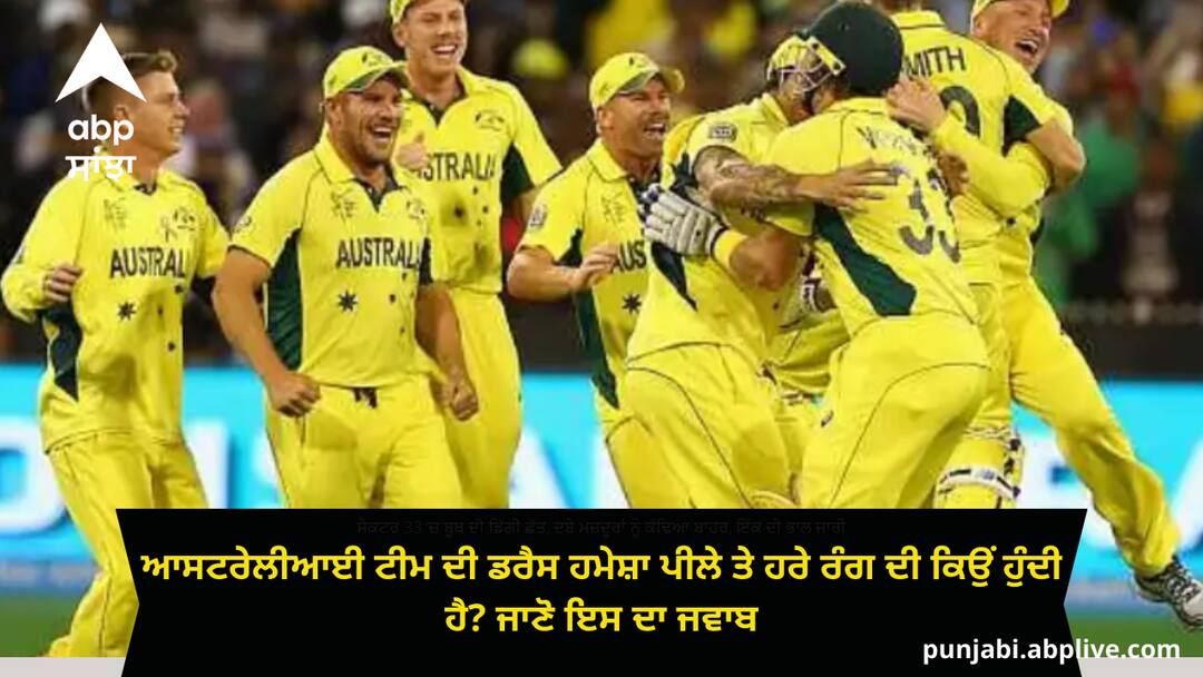 World Cup: ਵਿਸ਼ਵ ਕੱਪ ਸ਼ੁਰੂ ਹੋ ਗਿਆ ਹੈ। ਕ੍ਰਿਕਟ ਪ੍ਰਸ਼ੰਸਕਾਂ ਲਈ ਇਹ ਕਿਸੇ ਤਿਉਹਾਰ ਤੋਂ ਘੱਟ ਨਹੀਂ ਹੈ। ਇਸ ਦੇ ਨਾਲ ਹੀ ਅੱਜ ਦਾ ਦਿਨ ਭਾਰਤੀ ਦਰਸ਼ਕਾਂ ਲਈ ਬਹੁਤ ਖਾਸ ਹੈ ਕਿਉਂਕਿ ਅੱਜ ਆਸਟਰੇਲੀਆ ਅਤੇ ਭਾਰਤ ਵਿਚਾਲੇ ਮੈਚ ਚੱਲ ਰਿਹਾ ਹੈ। ਪਰ ਅਸੀਂ ਮੈਚ ਦੀ ਨਹੀਂ ਬਲਕਿ ਆਸਟਰੇਲੀਆਈ ਕ੍ਰਿਕਟ ਟੀਮ ਦੀ ਜਰਸੀ ਬਾਰੇ ਗੱਲ ਕਰਨ ਜਾ ਰਹੇ ਹਾਂ। ਦਰਅਸਲ, ਤੁਸੀਂ ਮੈਦਾਨ 'ਚ ਟੀਮ ਦੀ ਜਰਸੀ ਦੇਖ ਕੇ ਕਿਸੇ ਵੀ ਦੇਸ਼ ਦੀ ਟੀਮ ਦੀ ਪਛਾਣ ਕਰ ਸਕਦੇ ਹੋ। ਆਸਟਰੇਲੀਆਈ ਟੀਮ ਦੀ ਜਰਸੀ ਪੀਲੀ ਅਤੇ ਹਰੇ ਰੰਗ ਦੀ ਹੈ। ਆਓ ਤੁਹਾਨੂੰ ਦੱਸਦੇ ਹਾਂ ਕਿ ਅਜਿਹਾ ਕਿਉਂ ਹੈ।