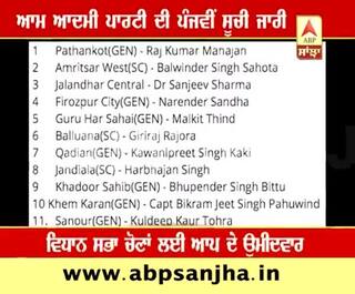 ਆਮ ਆਦਮੀ ਪਾਰਟੀ ਦੀ ਪੰਜਵੀਂ ਸੂਚੀ ਵਿੱਚ 12 ਉਮੀਦਵਾਰ