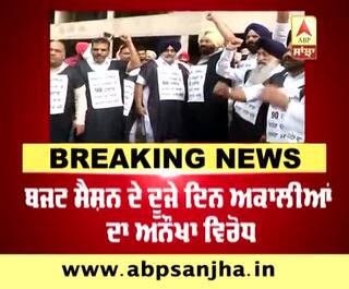 ਬਜਟ ਸੈਸ਼ਨ ਦੇ ਦੂਜੇ ਦਿਨ ਅਕਾਲੀਆਂ ਦਾ ਅਨੌਖਾ ਵਿਰੋਧAkalis' unique protest on the second day of the budget session