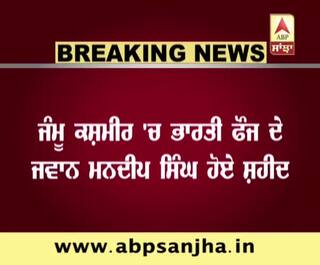 Breaking:- ਪਾਕਿਸਤਾਨ ਵੱਲੋਂ ਫਾਇਰਿੰਗ 'ਚ ਫੌਜ ਦਾ ਜਵਾਨ ਸ਼ਹੀਦBreaking:- Jawan Mandeep Singh martyred in cross-border firing