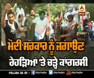 ਮੋਦੀ ਸਰਕਾਰ ਨੂੰ ਜਗਾਉਣ ਲਈ ਰੇਹੜਿਆਂ 'ਤੇ ਚੜ੍ਹੇ ਕਾਂਗਰਸੀ