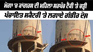 Moga 'ਚ congress ਦੀ ਮਹਿਲਾ ਸਰਪੰਚ ਟੈਂਕੀ 'ਤੇ ਚੜ੍ਹੀ, ਵੇਖੋ ਕਿਉਂ ਕੀਤਾ High Voltage Drama