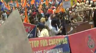ਬੈਰੀਕੇਡਿੰਗ ਤੋੜੀ ਗਈ, ਪੁਲਿਸ ਵੱਲੋਂ ਵਾਟਰ ਕੈਨਨ ਦਾ ਇਸਤੇਮਾਲ