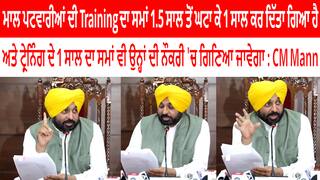 ਮਾਲ ਪਟਵਾਰੀਆਂ ਦੀ Training ਦਾ ਸਮਾਂ 1.5 ਸਾਲ ਤੋਂ ਘਟਾ ਕੇ 1 ਸਾਲ ਕਰ ਦਿੱਤਾ ਗਿਆ ਹੈ ਅਤੇ ਟ੍ਰੇਨਿੰਗ ਦੇ 1 ਸਾਲ ਦਾ ਸਮਾਂ ਵੀ ਉਨ੍ਹਾਂ ਦੀ ਨੌਕਰੀ 'ਚ ਗਿਣਿਆ ਜਾਵੇਗਾ : CM Mann
